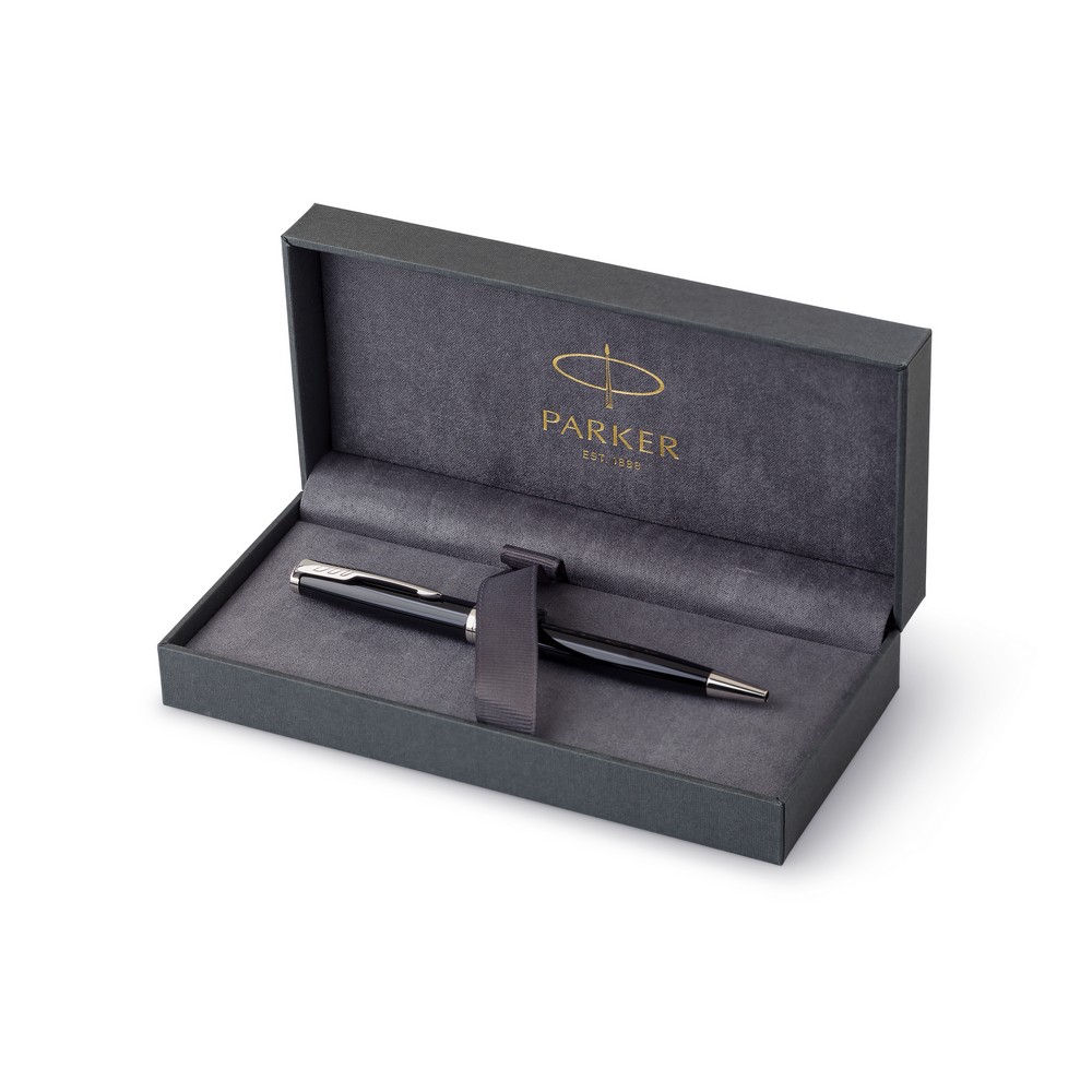 Шариковая ручка Parker Sonnet с механизмом поворота, упакованная в подарочную коробку, изготовленная из металла и нержавеющей стали.