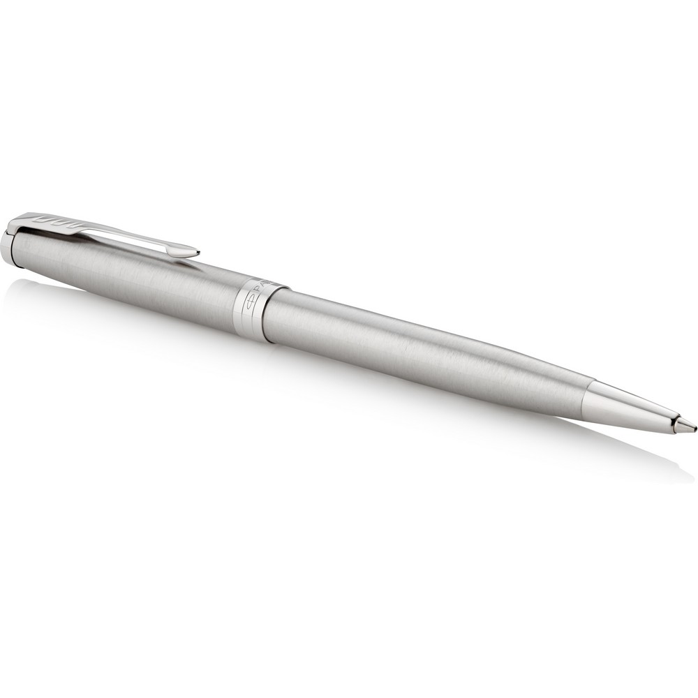 Шариковая ручка Parker Sonnet с механизмом нажатия, пишет черными чернилами, упакована в подарочную коробку, изготовлена из металла и нержавеющей стали.