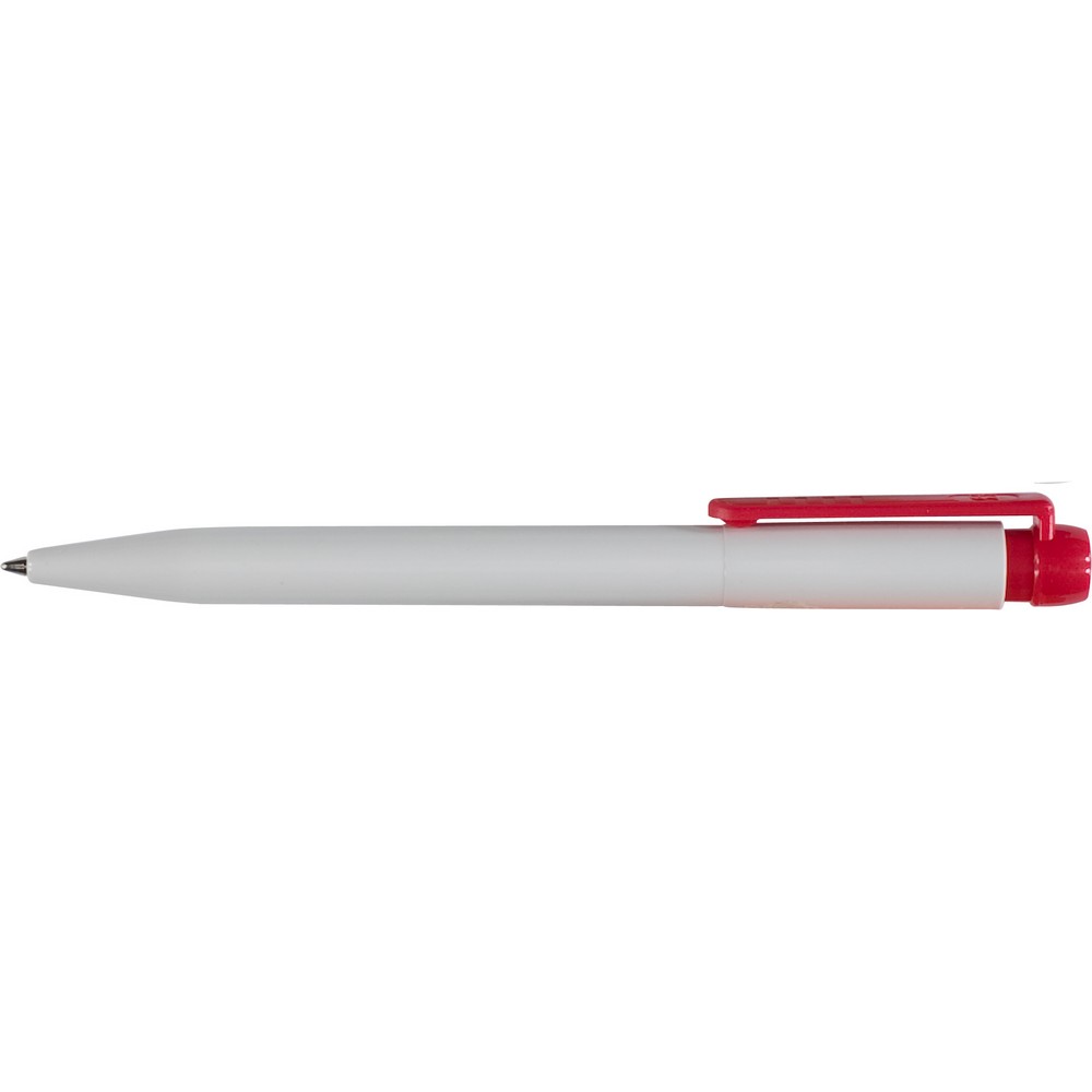 Шариковая ручка Stilolinea с белым корпусом, цветным широким зажимом, пишет синим цветом, оснащена немецким чернилами Dokumental Ink, изготовлена из пластика ABS, никеля и металла.