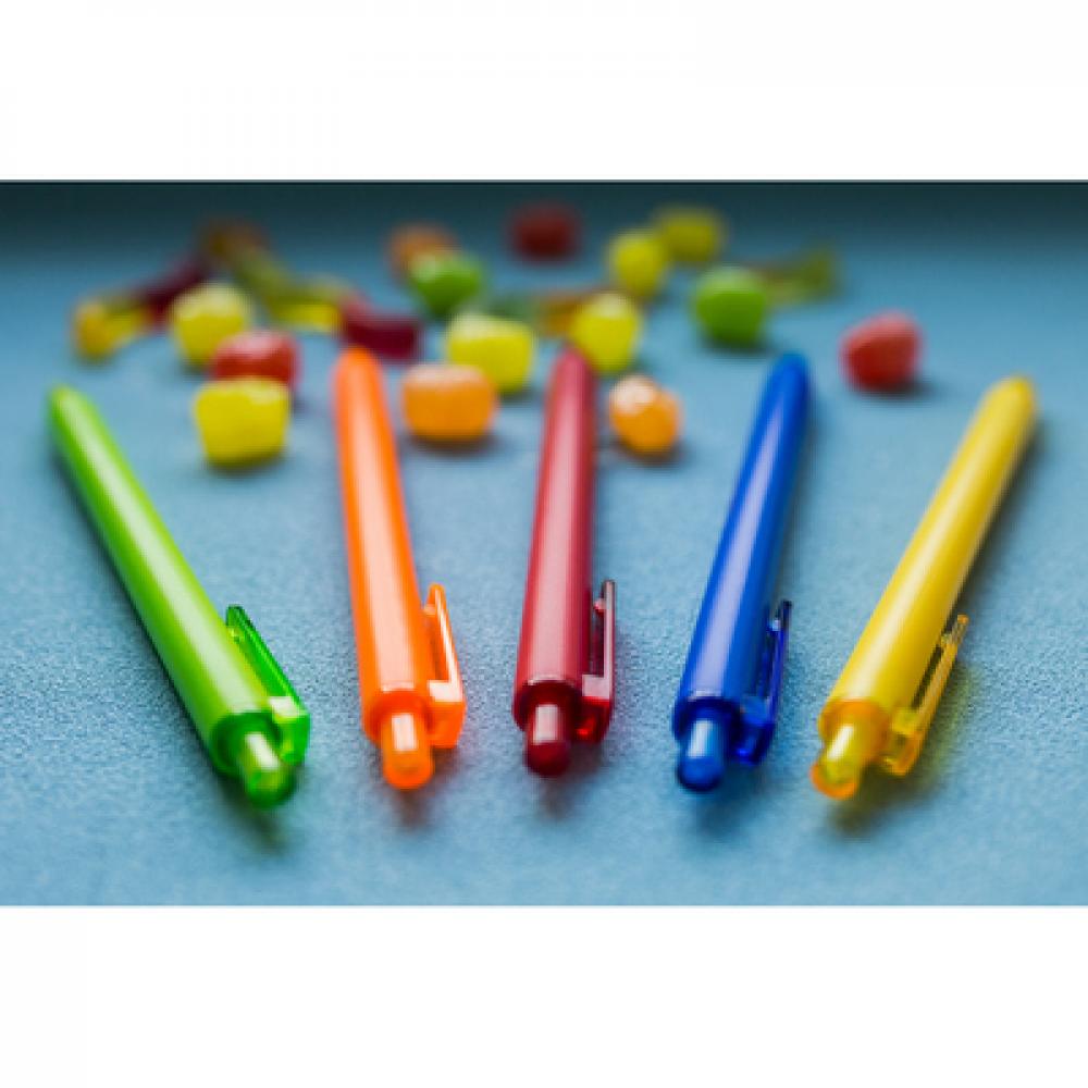 Шариковая ручка, изготовленная из RABS, с прозрачным клипом и наконечниками.
