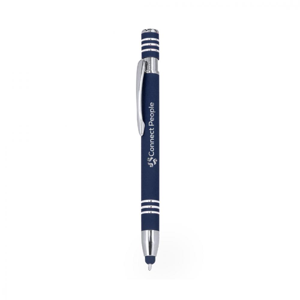 Шариковая ручка-стилус с кнопочным механизмом, изготовленная из алюминия. Прорезиненная отделка, специально разработанная для лазерного брендирования, выявляет логотип серебристого цвета. Хромированная фурнитура и подходящий клип в комплекте. Синие чернила. Алюминий. Прорезиненная отделка