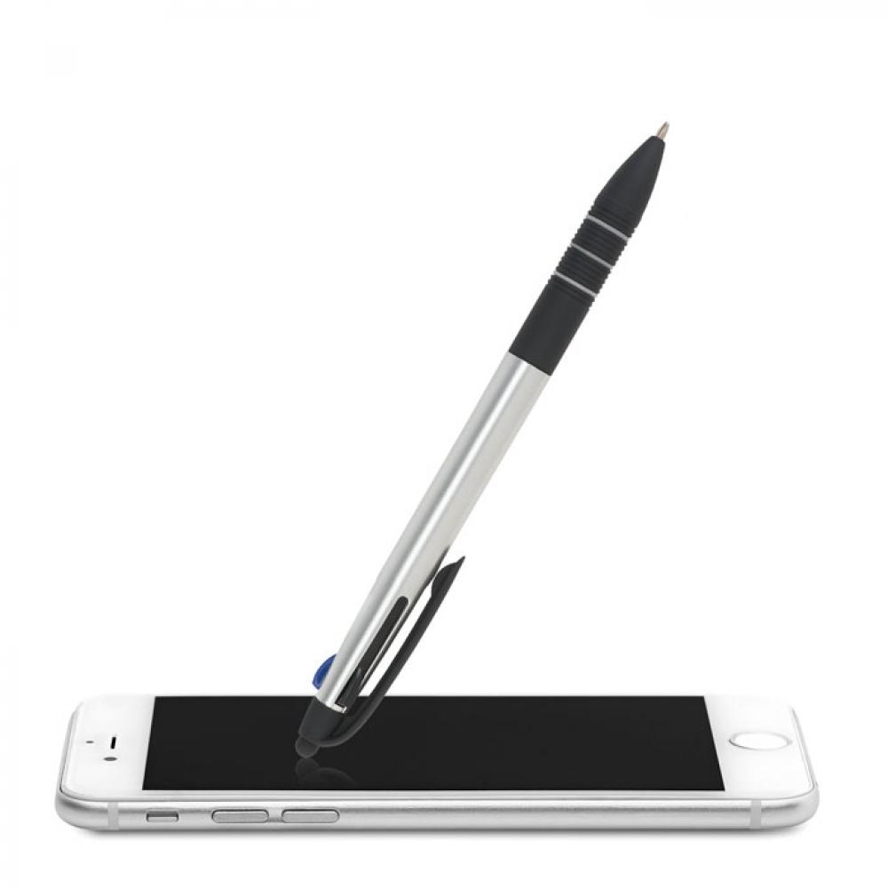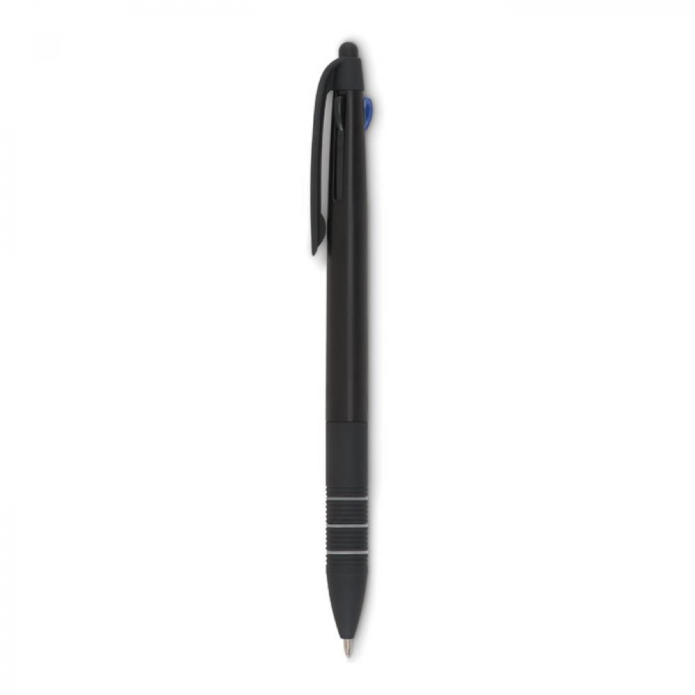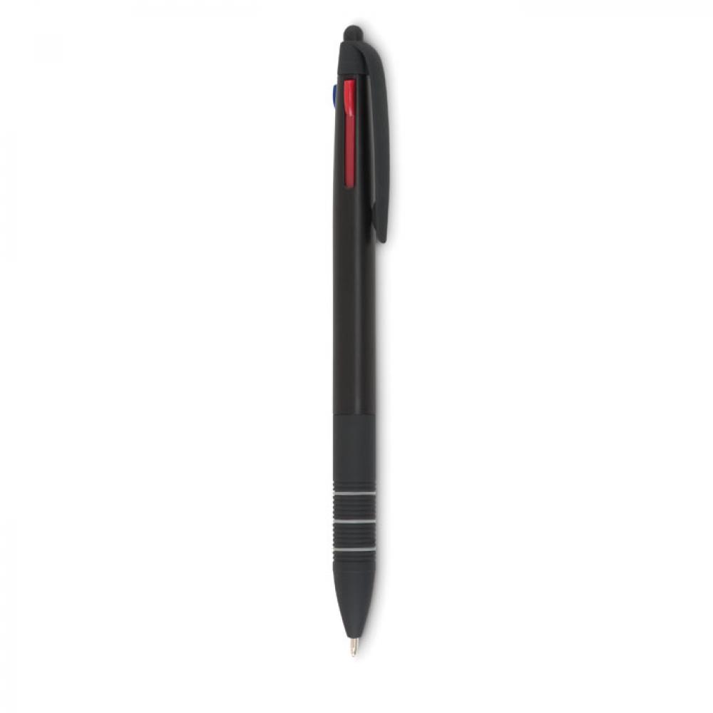 Пластиковая трехцветная ручка-стилус. Цвета чернил: красный, синий, черный