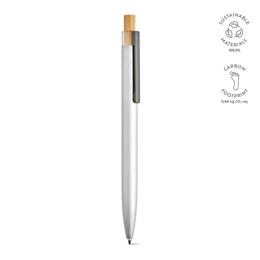 Экологичная шариковая ручка, продуманно созданная с корпусом из переработанного алюминия и элементами из rPET и бамбука на верхней части. Наслаждайтесь 1 км синих чернил Dokumental®. Поставляется в экологически чистой коробке из натурального крафт-картона.