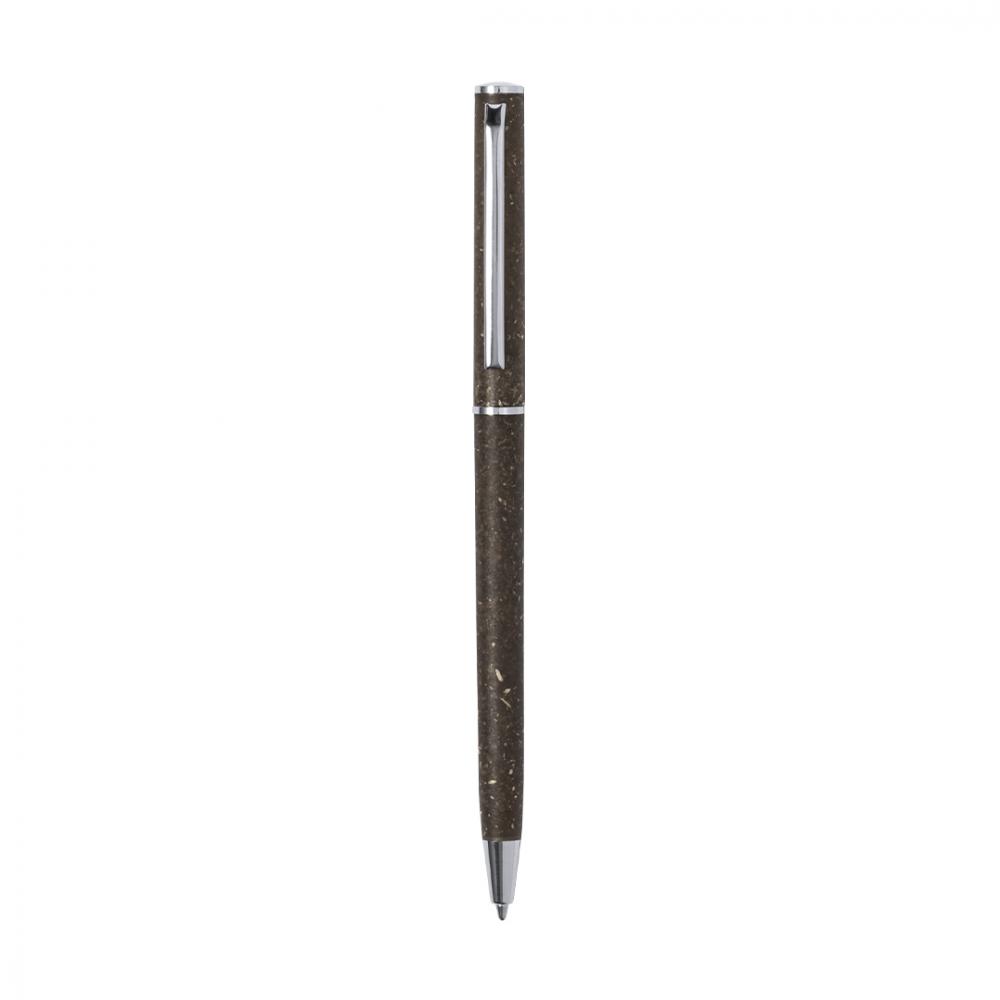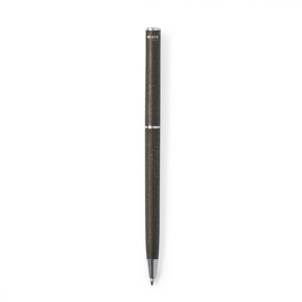 Характеристики Шариковая ручка с корпусом из кофейного волокна, металлическим зажимом и хромированными фурнитурными деталями. Механизм поворота и синий стержень. С логотипом из кофейного волокна, доступна в натуральном цвете. Кофейное волокно - это круговое решение, полученное из использования отходов, производимых при производстве кофе. Устойчивая альтернатива, которая способствует сокращению использования пластика, экономии энергии в процессе производства и способствует охране окружающей среды. Кофейное волокно/ABS