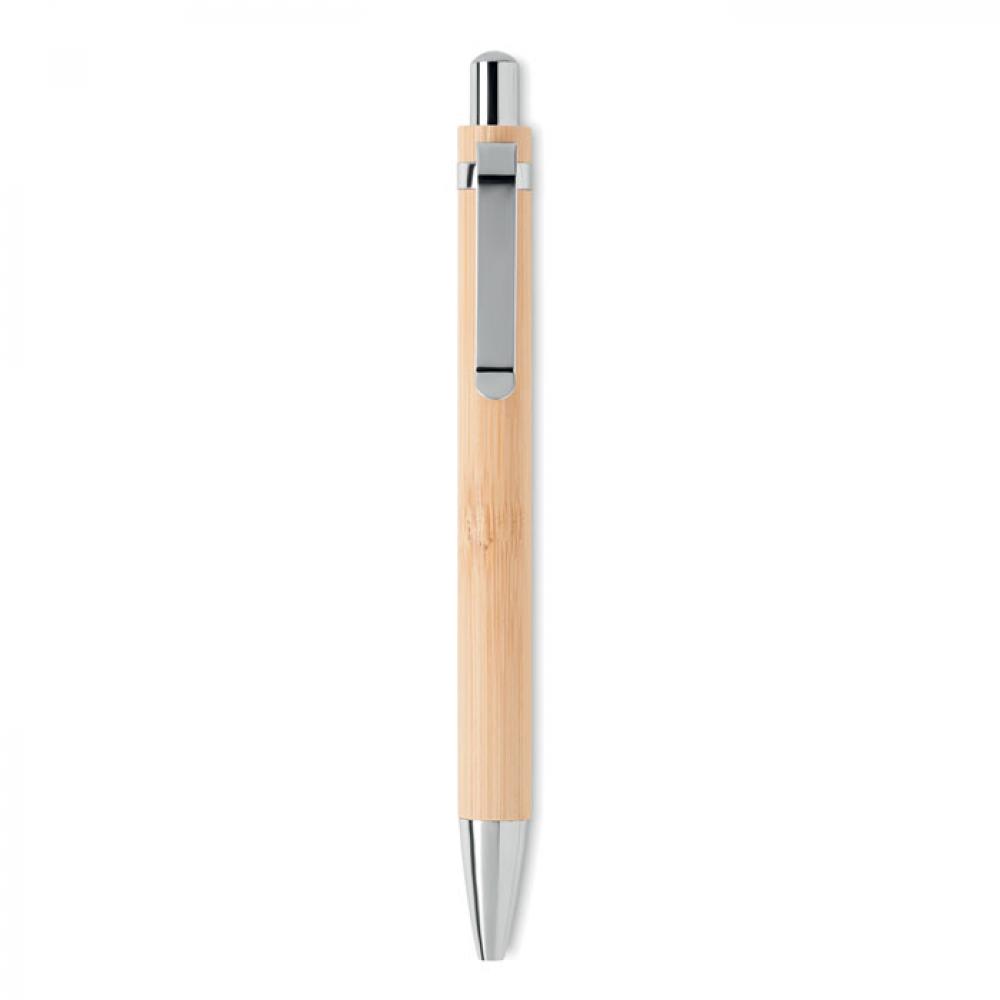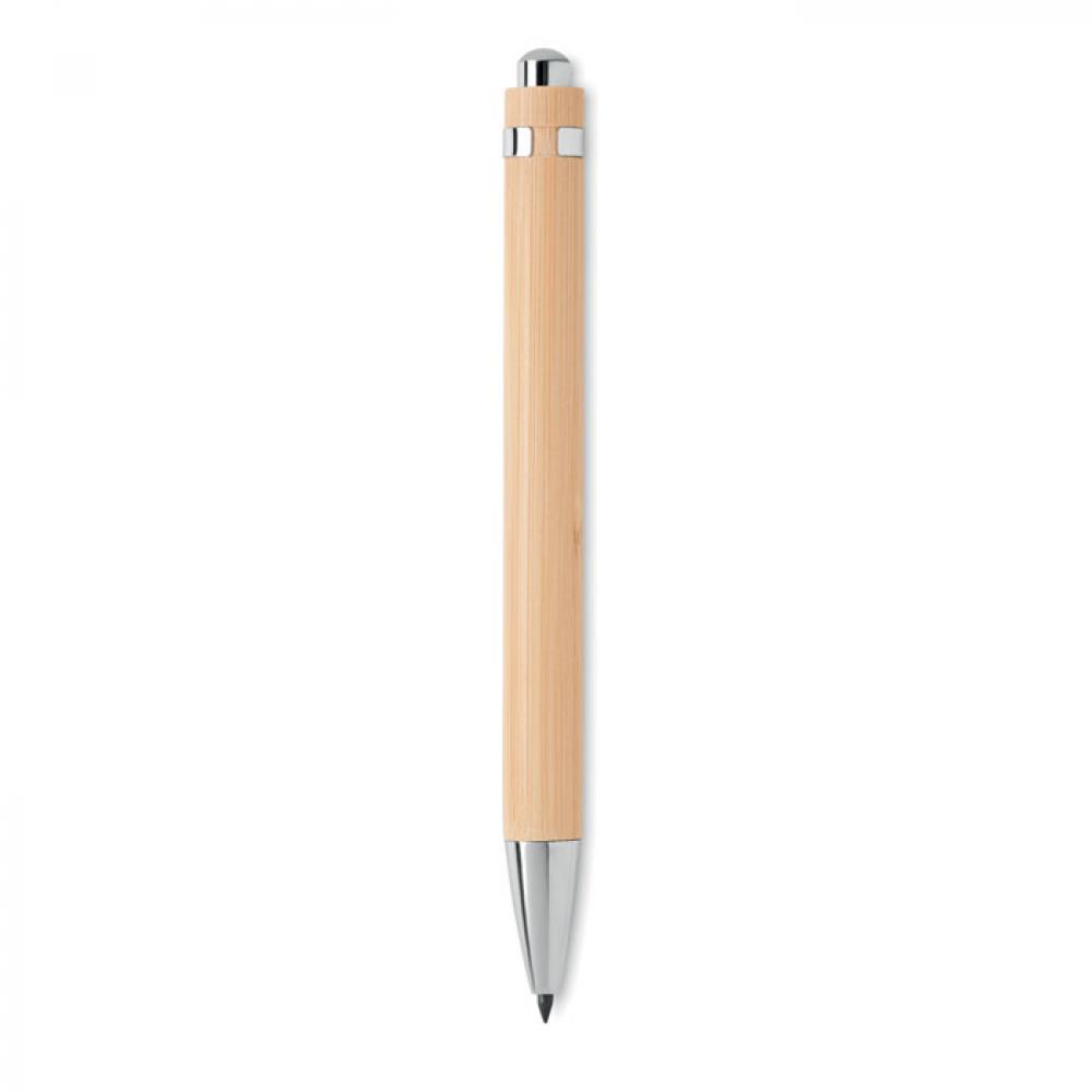Долговечная нажимная ручка без чернил в бамбуковом корпусе с блестящей хромированной фурнитурой. Наконечник из металлического сплава по мере того как вы пишете окисляет поверхность бумаги. FSC®-certified | FSC 100%, N5.7, FSC-C213206