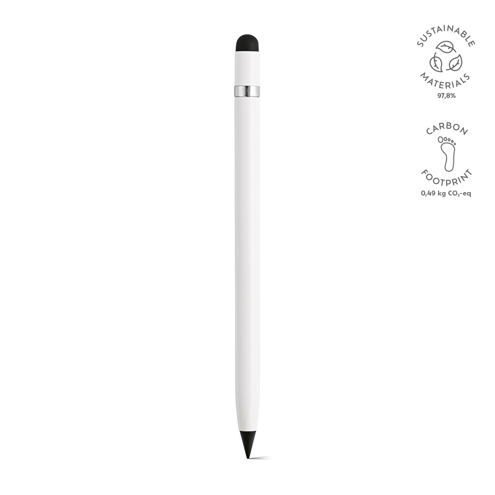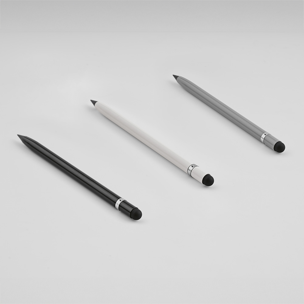 Изготовленная из переработанного алюминия, эта безчернильная ручка переосмысливает письмо – это бесконечная ручка с графитовым наконечником. Усовершенствована деталью из серебра, предотвращающей катание, встроенным ластиком и сенсорным наконечником. Поставляется в индивидуальной коробке из переработанной бумаги.