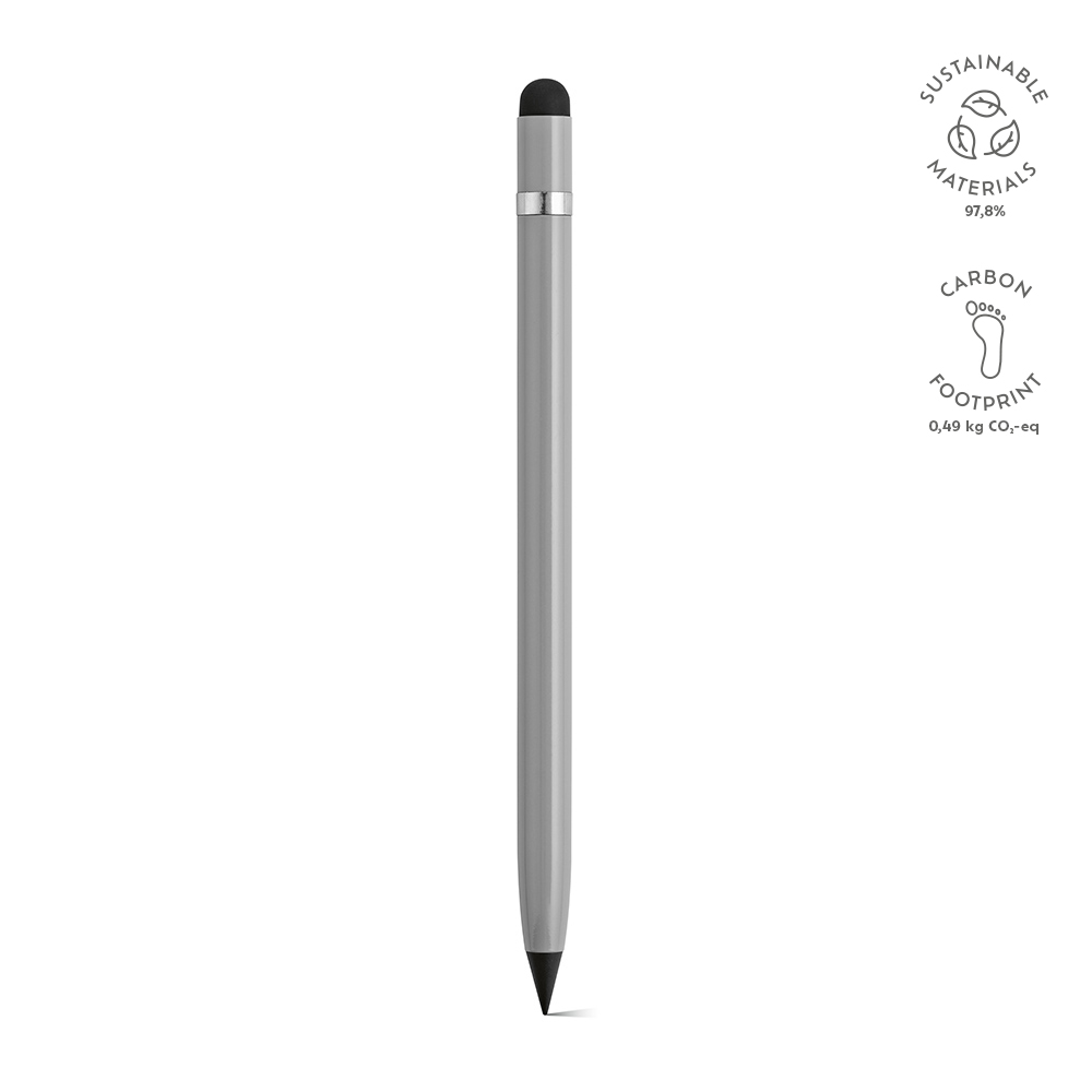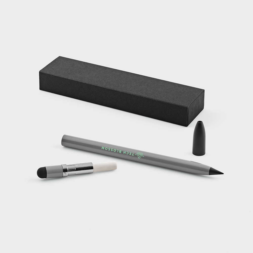 Изготовленная из переработанного алюминия, эта безчернильная ручка переосмысливает письмо – это бесконечная ручка с графитовым наконечником. Усовершенствована деталью из серебра, предотвращающей катание, встроенным ластиком и сенсорным наконечником. Поставляется в индивидуальной коробке из переработанной бумаги.