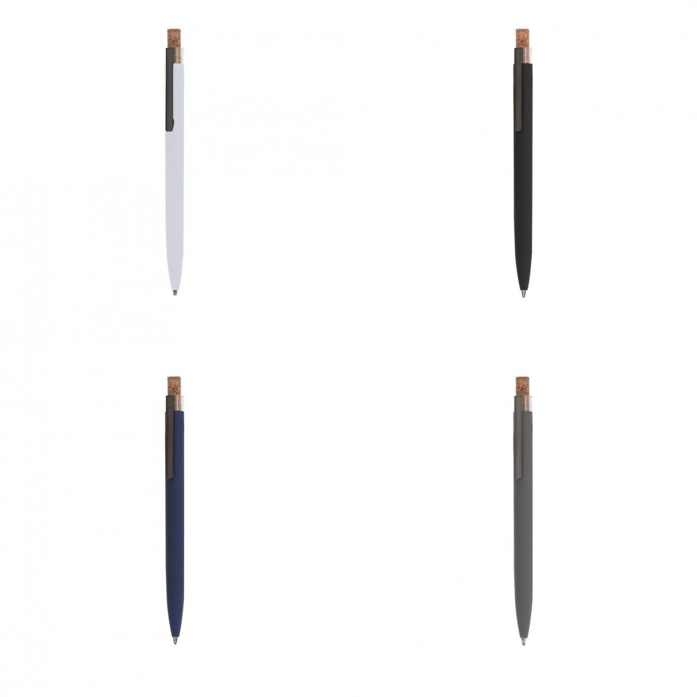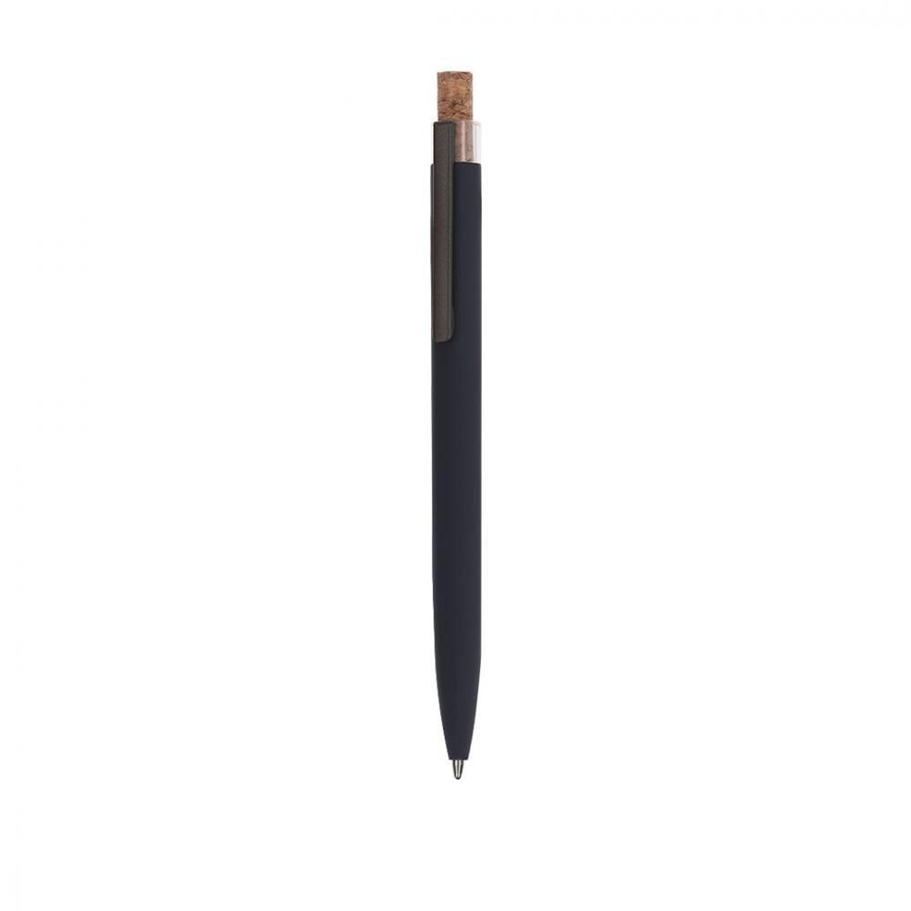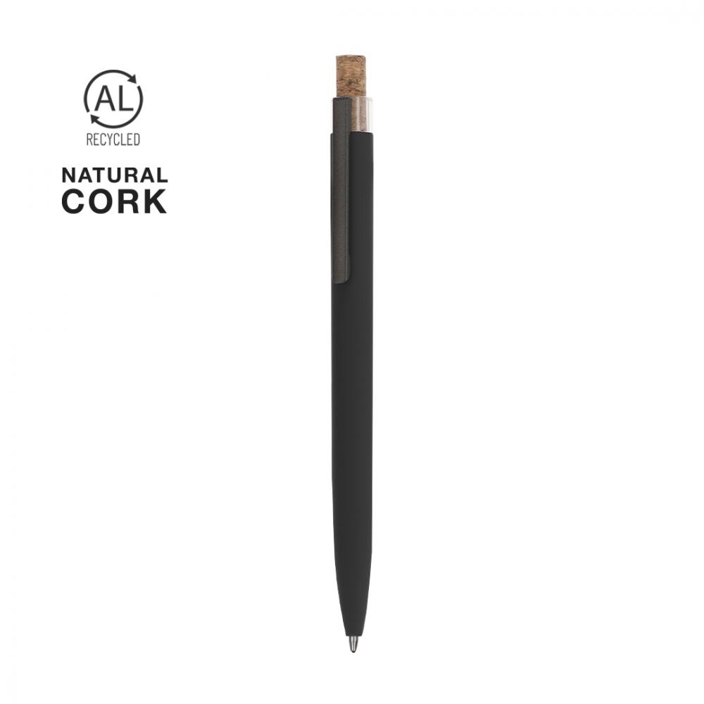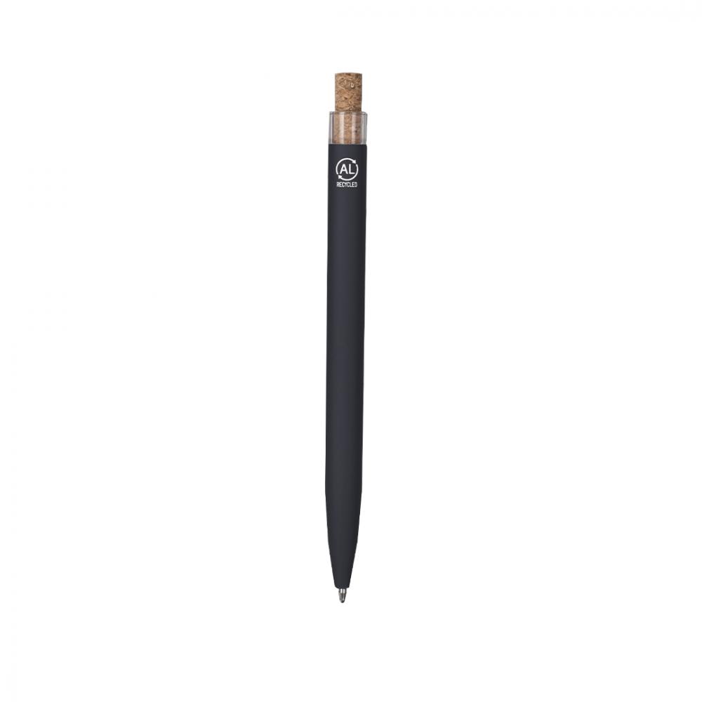 Ручка с механизмом нажатия из переработанного алюминия. Кнопка из пробки и корпус с резиновым покрытием, специально разработанный для лазерной маркировки. Металлический зажим и этикетка из переработанного алюминия на верхней части ручки. Картридж большого объема и синяя чернила. Переработанный алюминий - материал с почти бесконечными возможностями для переработки, не теряющий своих исходных свойств и потребляющий меньше энергии в этом процессе. Сертификат GRS (Глобальный стандарт переработки) гарантирует переработанное происхождение материала, используемого для производства продукта.