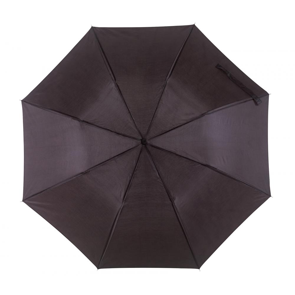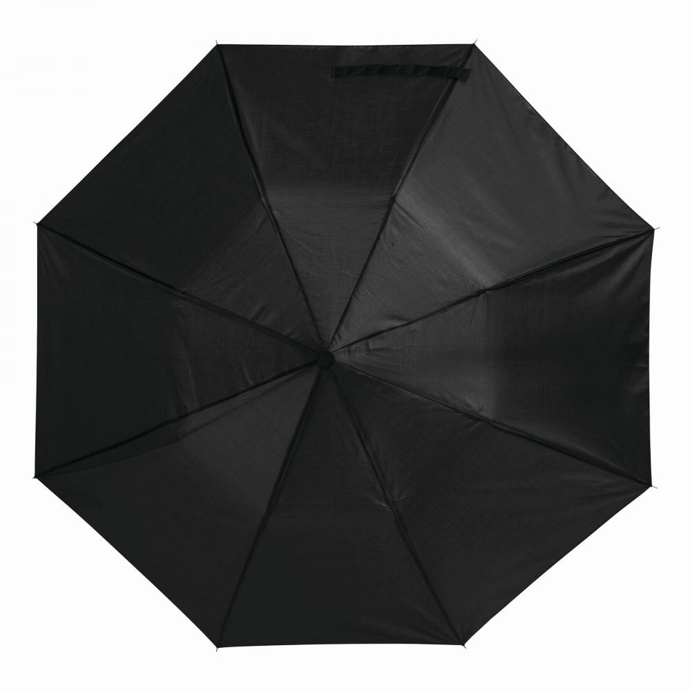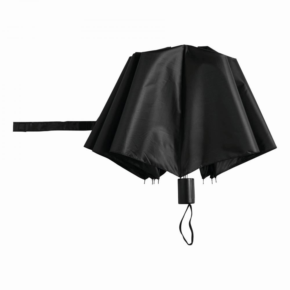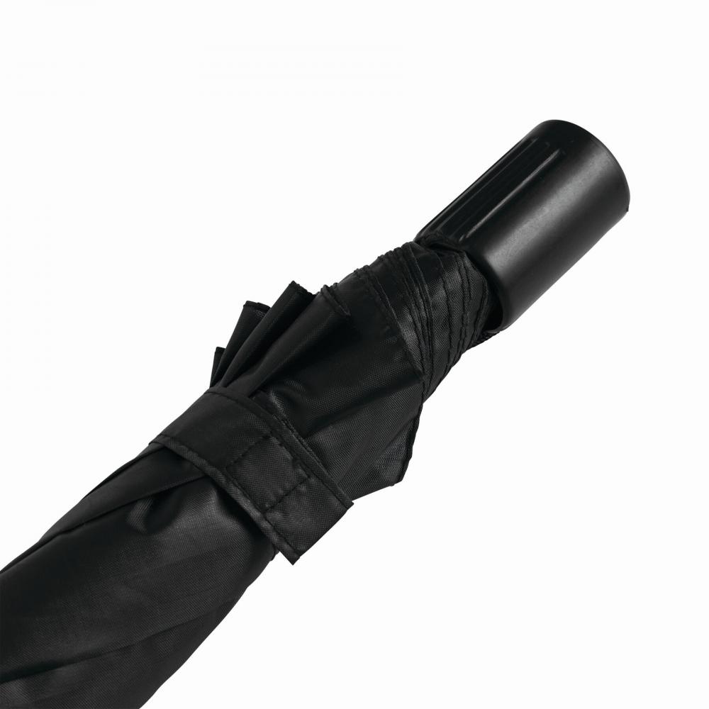 Карманный зонт REGULAR с ручным открыванием, двухсекционный металлический стержень и металлические ребра, черная пластиковая ручка с навесом из полиэстера, застежка на липучке