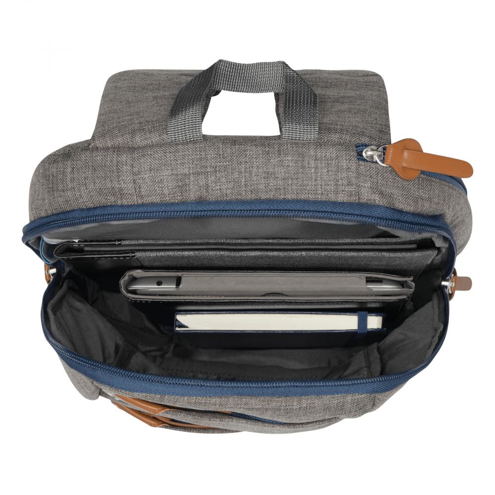 Рюкзак ABERDEEN: 2 передних отделения на молнии, 1 основное отделение на молнии, за ним 1 мягкий карман для ноутбука с вертикальной молнией, ручка для переноски, мягкие плечевые ремни и спинка