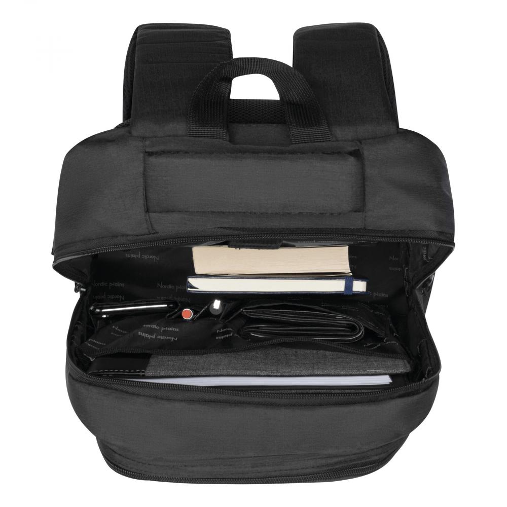 Рюкзак AMSTERDAM: 3 передних кармана на молнии, основное отделение на молнии с мягким внутренним карманом для ноутбука или планшета, органайзер с 5 карманами, мягкая ручка для переноски, петля для переноски, эргономично-формированные мягкие плечевые ремни и мягкая задняя панель, рукав для чемодана на задней стороне – продукт бренда NORDIC PLAINS
