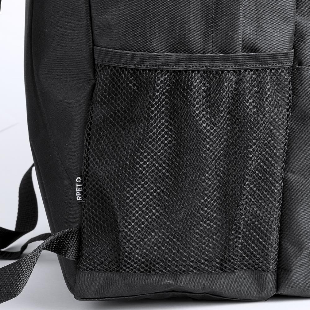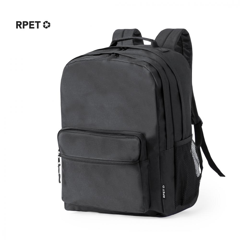 Характеристики Рюкзак из прочного материала 600D RPET. Он имеет два центральных кармана с двойной молнией и два передних кармана для удобного доступа. Внутри есть подкладка для ноутбука до 15 дюймов. Спинка и лямки рюкзака обиты мягким материалом и регулируются, с вставками из дышащей ткани. Также есть верхняя ручка и боковой сетчатый карман. На бирке есть значок RPET. Поставляется в индивидуальной переработанной упаковке. Материал RPET изготовлен из переработанного пластика для поощрения повторного использования пластиковых отходов и помощи в сохранении планеты. Мягкая спинка и лямки