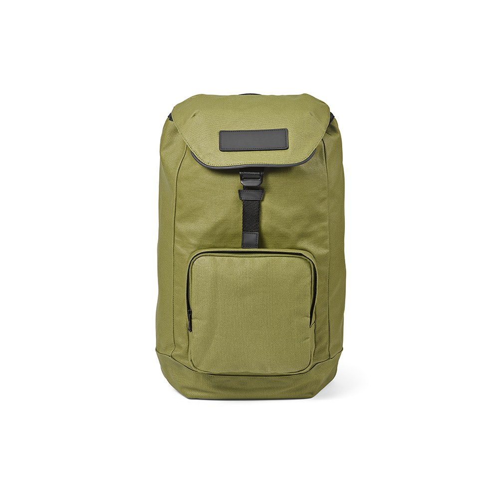Этот рюкзак объемом 20 литров изготовлен из переработанного хлопкового полотна плотностью 240 г/м² с полиуретановым покрытием, что делает его водостойким. Он обладает большой вместимостью и оснащен уникальной застежкой на пряжке "G". Имеется съемный передний нашивной элемент для персонализации. Рюкзак дополнен меньшим передним карманом на молнии.