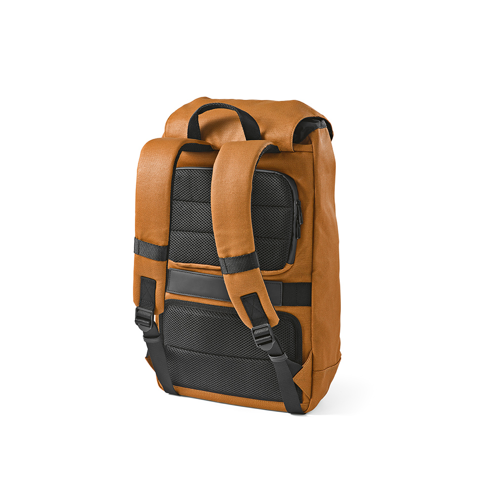 Этот рюкзак объемом 20 литров изготовлен из переработанного хлопкового полотна плотностью 240 г/м² с полиуретановым покрытием, что делает его водостойким. Он обладает большой вместимостью и оснащен уникальной застежкой на пряжке "G". Имеется съемный передний нашивной элемент для персонализации. Рюкзак дополнен меньшим передним карманом на молнии.