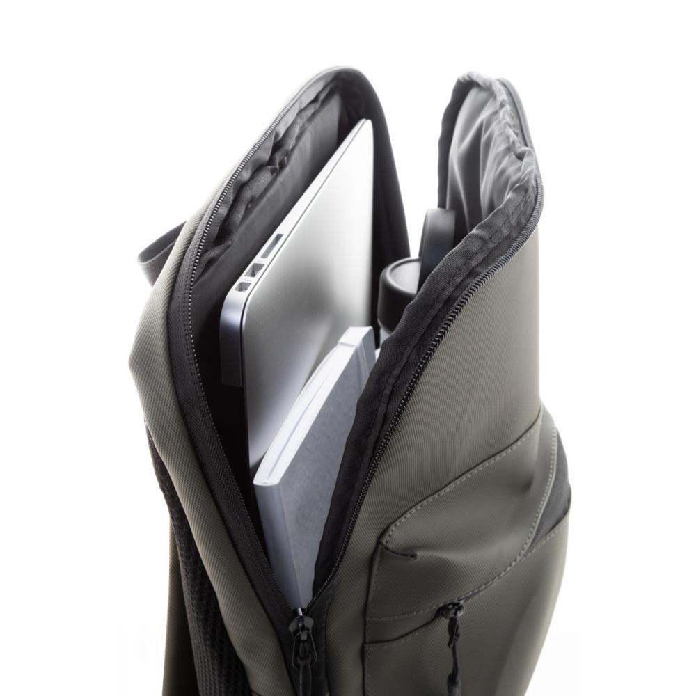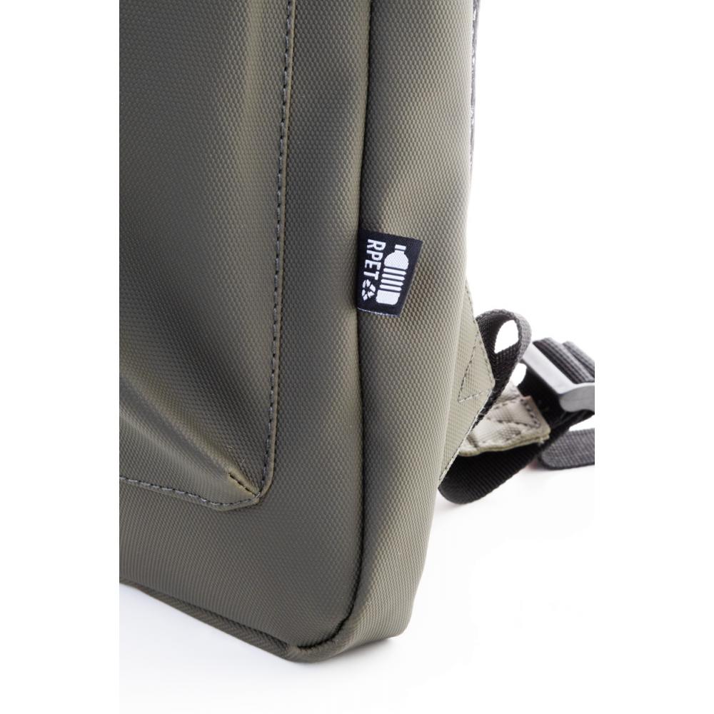 Водонепроницаемый узкий ноутбук-рюкзак из RPET с застежкой на молнии для ноутбука (15 дюймов) и передним карманом на молнии. С мягкой спинкой и плечевыми ремнями. Покрытый ПУ 600D RPET полиэстером, с характерной этикеткой RPET.