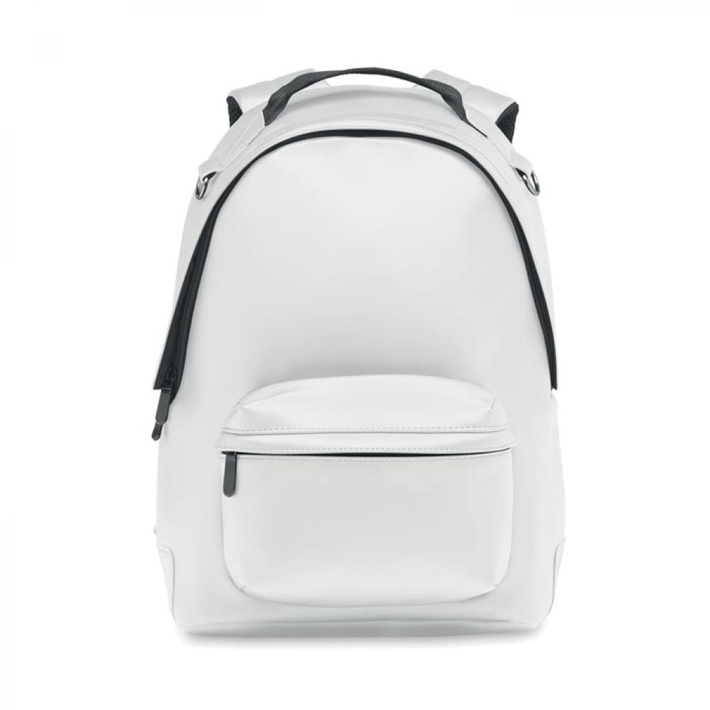 Рюкзак для ноутбука 15 дюймов из полиуретана с мягкой спинкой и усиленным дном. Передний карман на молнии. Подкладка - 210D RPET.