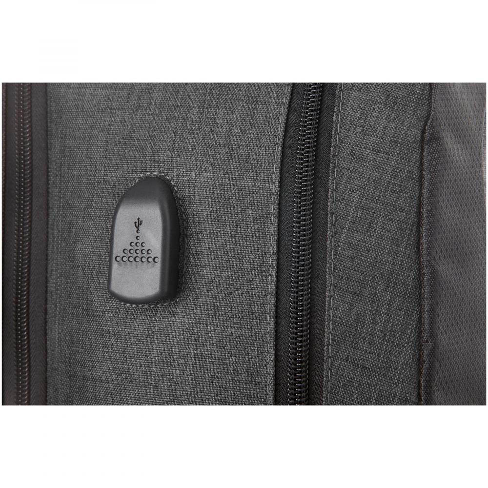 Стильный рюкзак для ноутбука 17" с USB-портом и кабелем. Оснащен защитой RFID в боковом кармане, дополнительными карманами на молнии и ремнем для крепления на чемодан сзади. Верхние и передние ручки, а также мягкие плечевые лямки обеспечивают удобство при переноске. Возможны незначительные отклонения в цвете фактического продукта из-за особенностей красителей, плетения и печати ткани.