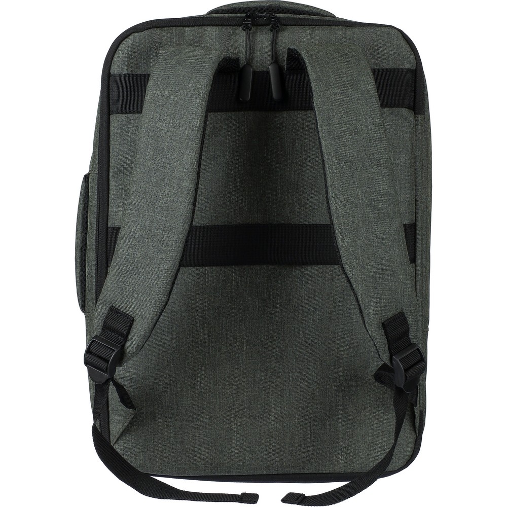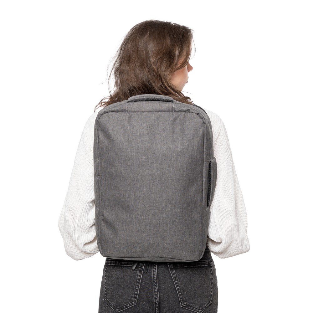 Рюкзак для ноутбука RPET 15" имеет большое отделение на молнии с несколькими карманами для вставки, карман для ноутбука на липучке для ноутбука 15 дюймов, вместимость 12 литров, дизайн включает усиленную, вентилируемую спинку, регулируемые лямки, боковую ручку для переноски и ремень для тележки, грузоподъемность: 10 кг, изделие из RPET полиэстера 300D с подкладкой из 210D RPET.