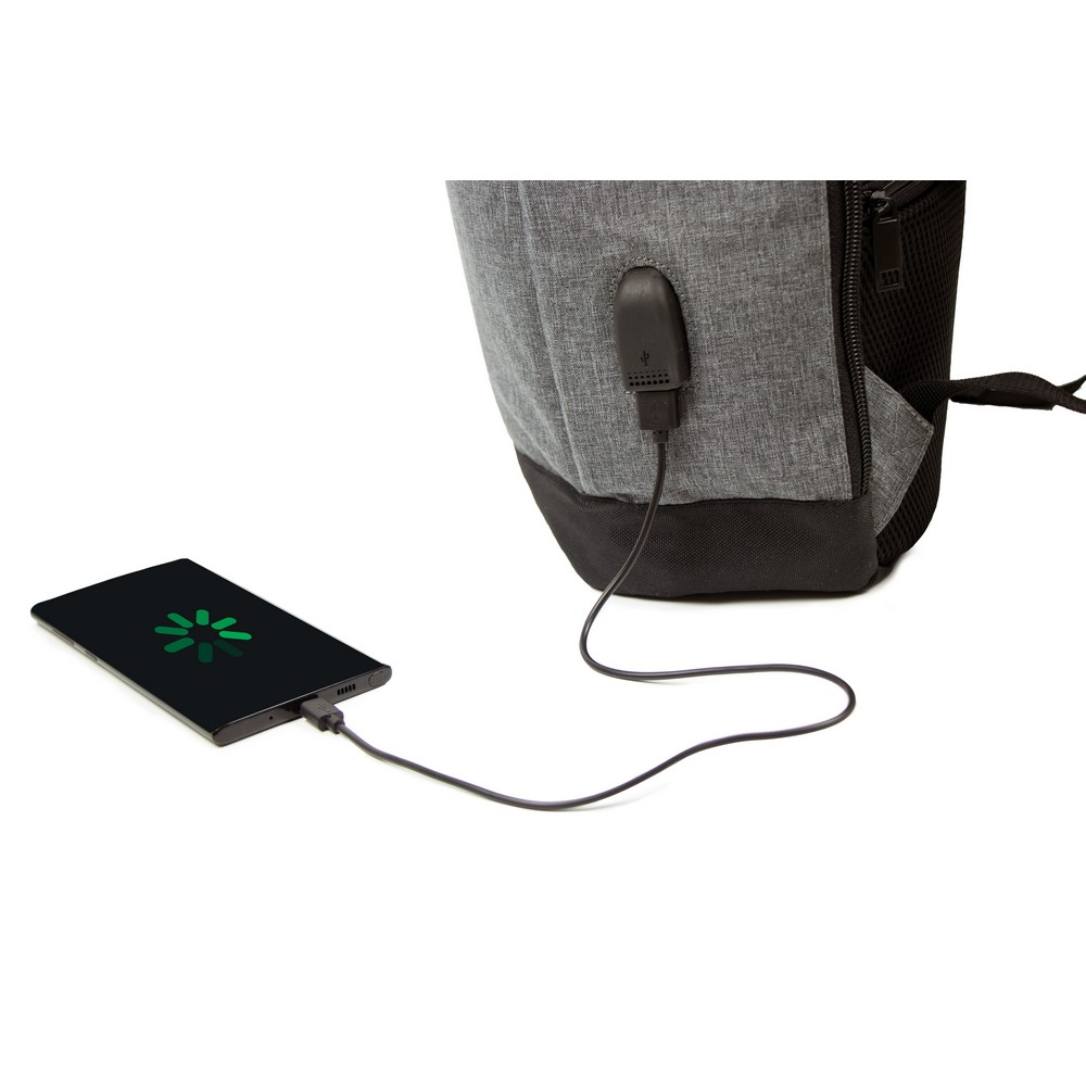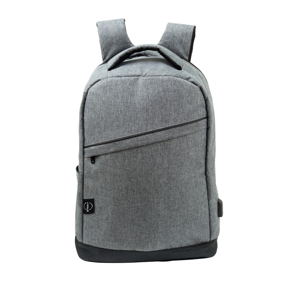 Рюкзак B'RIGHT с отделением для ноутбука 15,6", изготовлен из RPET, сертификат GRS (Global Recyclied Standard), основное отделение на молнии и передний карман, несколько внутренних отделений, в том числе 1 на молнии (съемное, с застежкой на липучке), 1 боковой карман, 1 задний карман на молнии, ремешок для крепления на ручке тележки, USB-порт с зарядным кабелем (блок питания в комплект не входит), мягкие регулируемые плечевые ремни