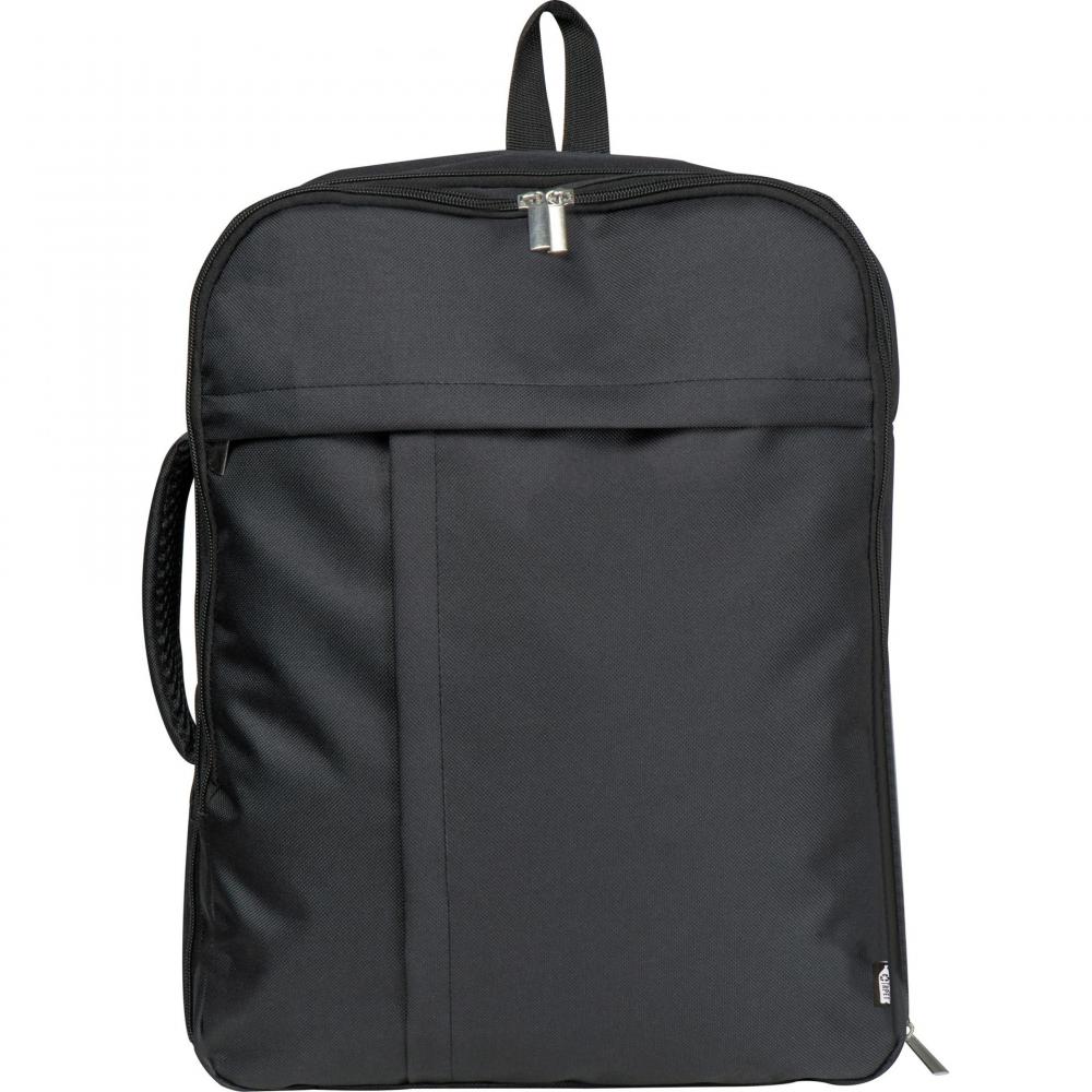 Рюкзак CrisMa для путешествий, изготовленный из переработанного полиэтилентерефталата (RPET), с отделением для ноутбука и большим передним карманом. Благодаря круговой молнии его можно упаковывать как чемодан. Мягкие плечевые ремни можно убрать в карман на молнии, и сумку можно использовать как обычную сумку благодаря боковой ручке. Мы нанесем ваш логотип на переднюю часть.
