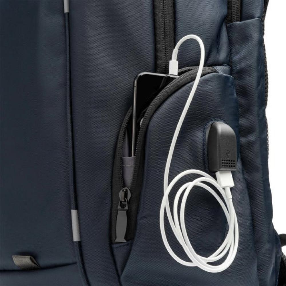 Рюкзак из нейлона. Подкладное отделение с мягкими отсеками для ноутбуков. Мягкая спинка и лямки. Отделение с USB-портом для подключения внешних аккумуляторов (не включены). В комплекте микро-USB-кабель. Благодаря своим характеристикам и размеру этот рюкзак идеально подходит для повседневного использования в офисе или в путешествиях.