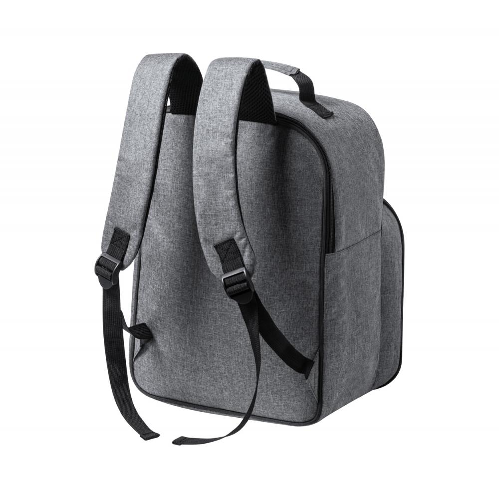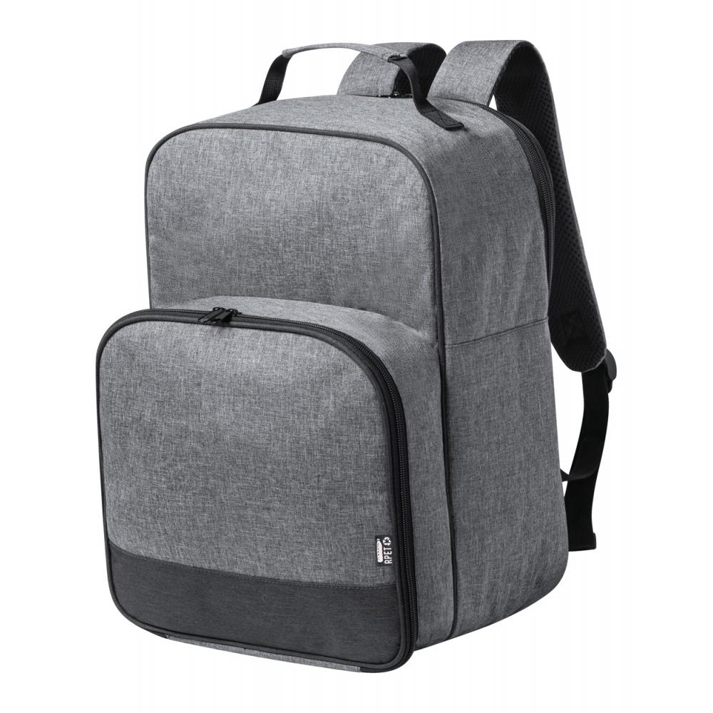 Рюкзак-холодильник для пикника RPET с мягкими лямками и спинкой, отделение для холодильника с набивкой PEVA. Включает в себя 2 стакана, 2 ножа, 2 ложки, 2 вилки, 2 тарелки и 2 салфетки. Полиэстер 600D RPET с отличительной этикеткой RPET.