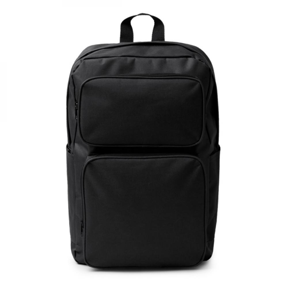 Рюкзак изготовлен из 600D RPET. Двойной передний карман с молнией и 2 боковых кармана. Обивка ручек и спинки.