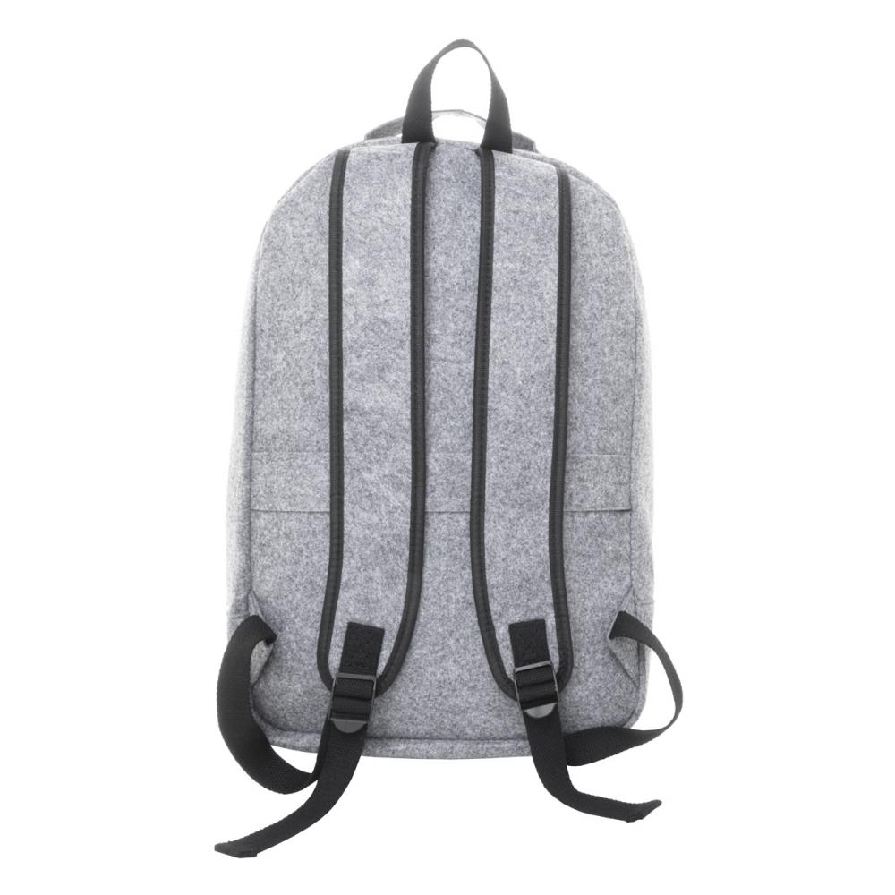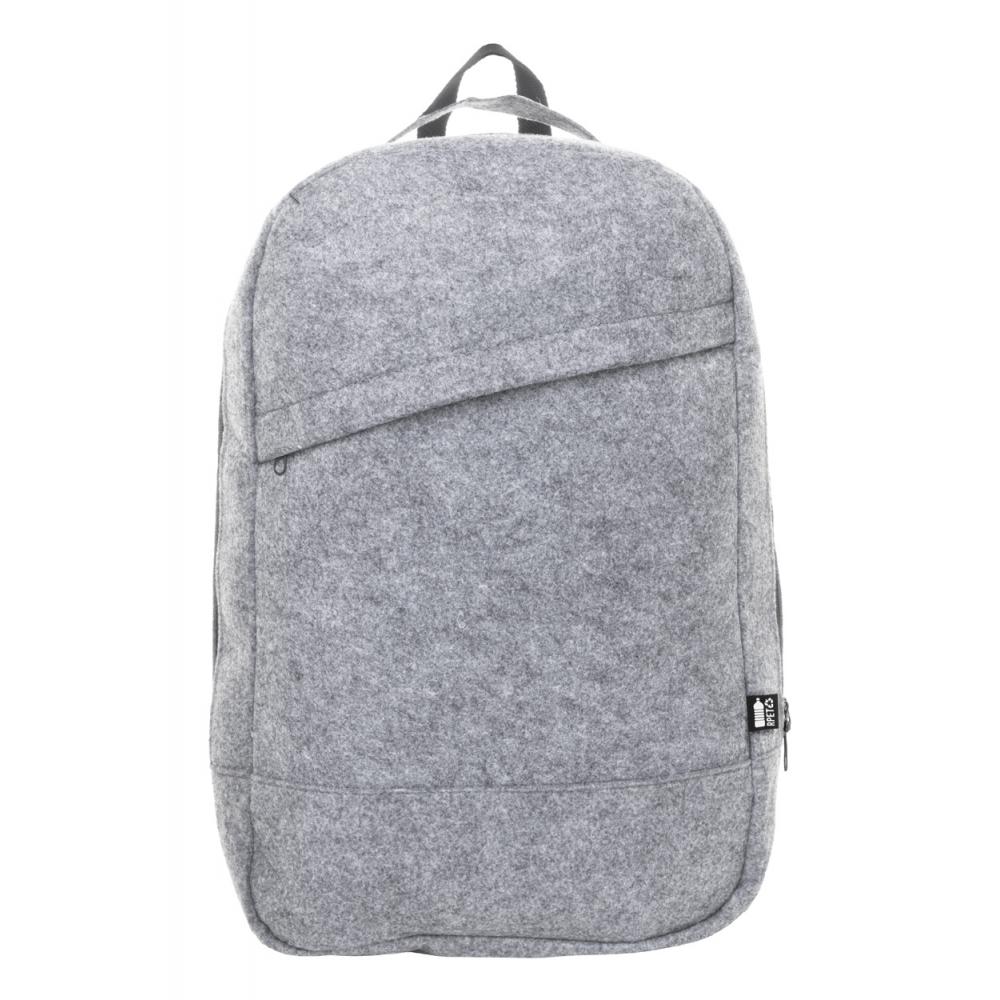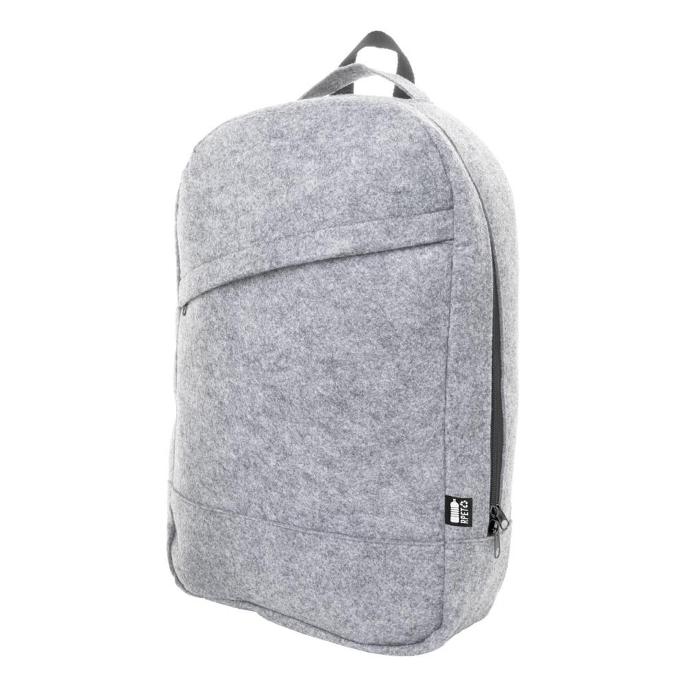 Рюкзак из фетра RPET с основным отделением на молнии и передним карманом. С отделением для ноутбука (15 дюймов), ремешком для тележки и мягкими лямками. С характерным ярлыком RPET.