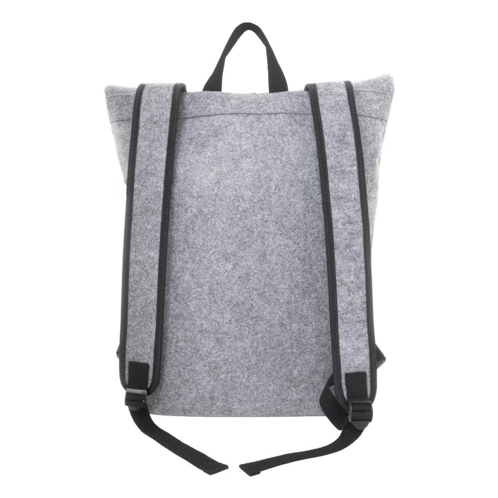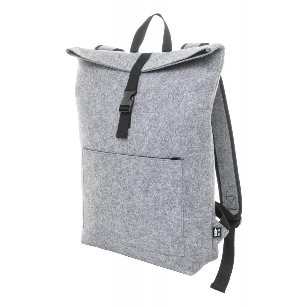Рюкзак с роллтопом из фетра RPET с застежкой на пряжке, основное отделение на молнии и передний карман, отделение для ноутбука (15") и мягкие лямки. С отличительной этикеткой RPET.