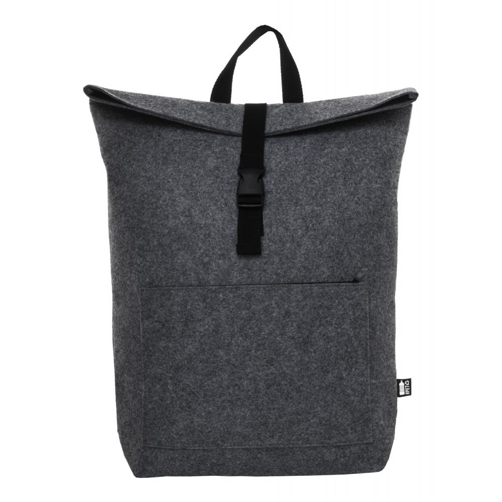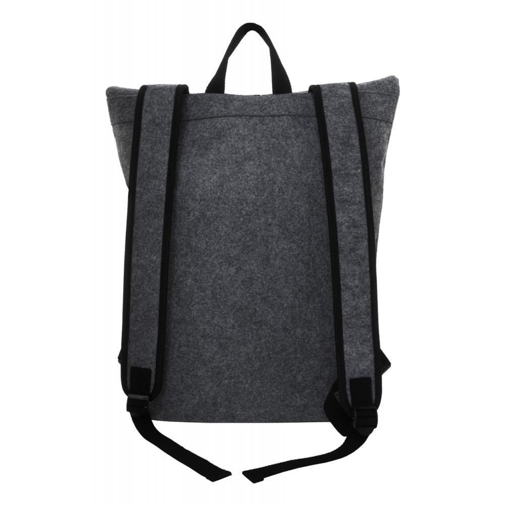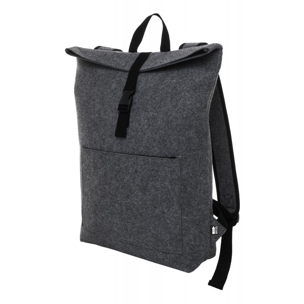 Рюкзак с роллтопом из фетра RPET с застежкой на пряжке, основное отделение на молнии и передний карман, отделение для ноутбука (15") и мягкие лямки. С отличительной этикеткой RPET.