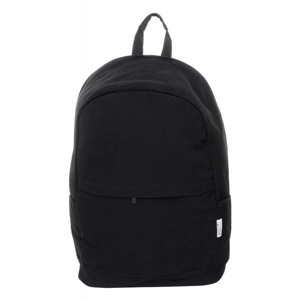 Рюкзак из переработанного хлопкового холста с застежкой на молнии, отделением для ноутбука (15 дюймов), передним карманом на молнии, боковыми карманами, ремешком для тележки, подкладкой на спине и плечевыми ремнями. Со скрытым карманом от краж. С характерной этикеткой из переработанного хлопка.