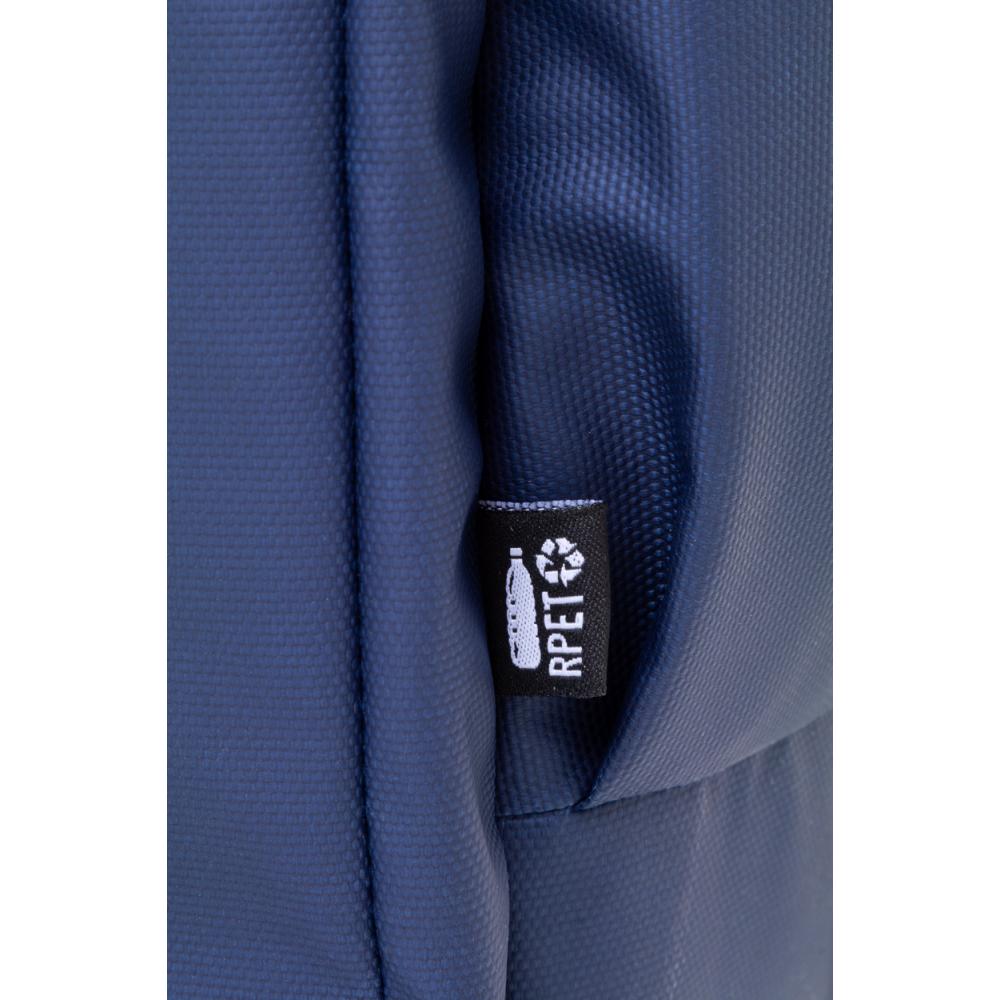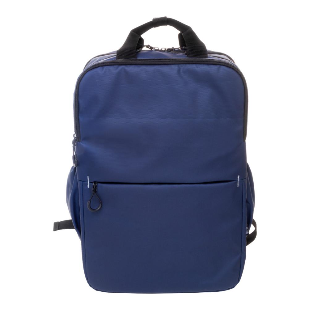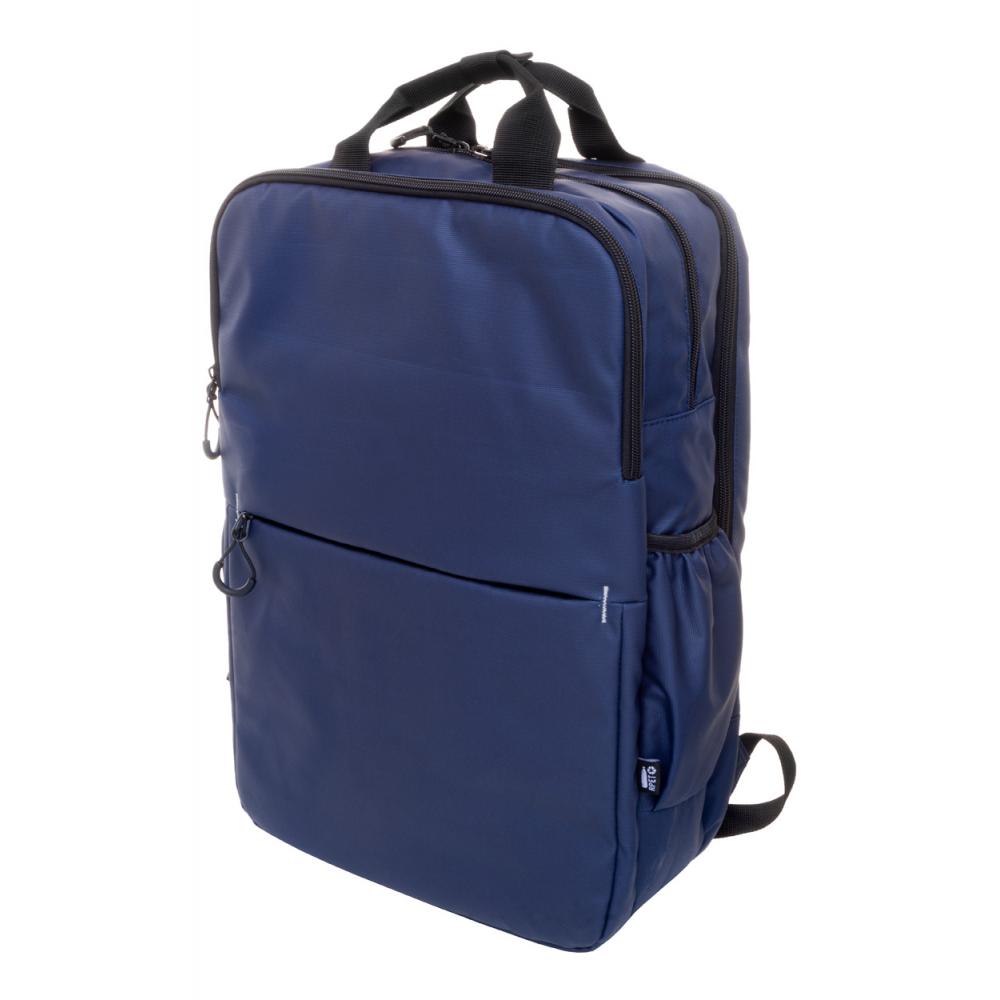 Водонепроницаемый рюкзак из RPET с двумя карманами на молнии, двумя передними карманами на молнии, боковыми карманами и отделением для ноутбука (16 дюймов) с защитой. С ремешком для тележки, подкладкой на спине и плечевыми ремнями. Покрытый ПУ 600D RPET полиэстером, с характерным ярлыком RPET.