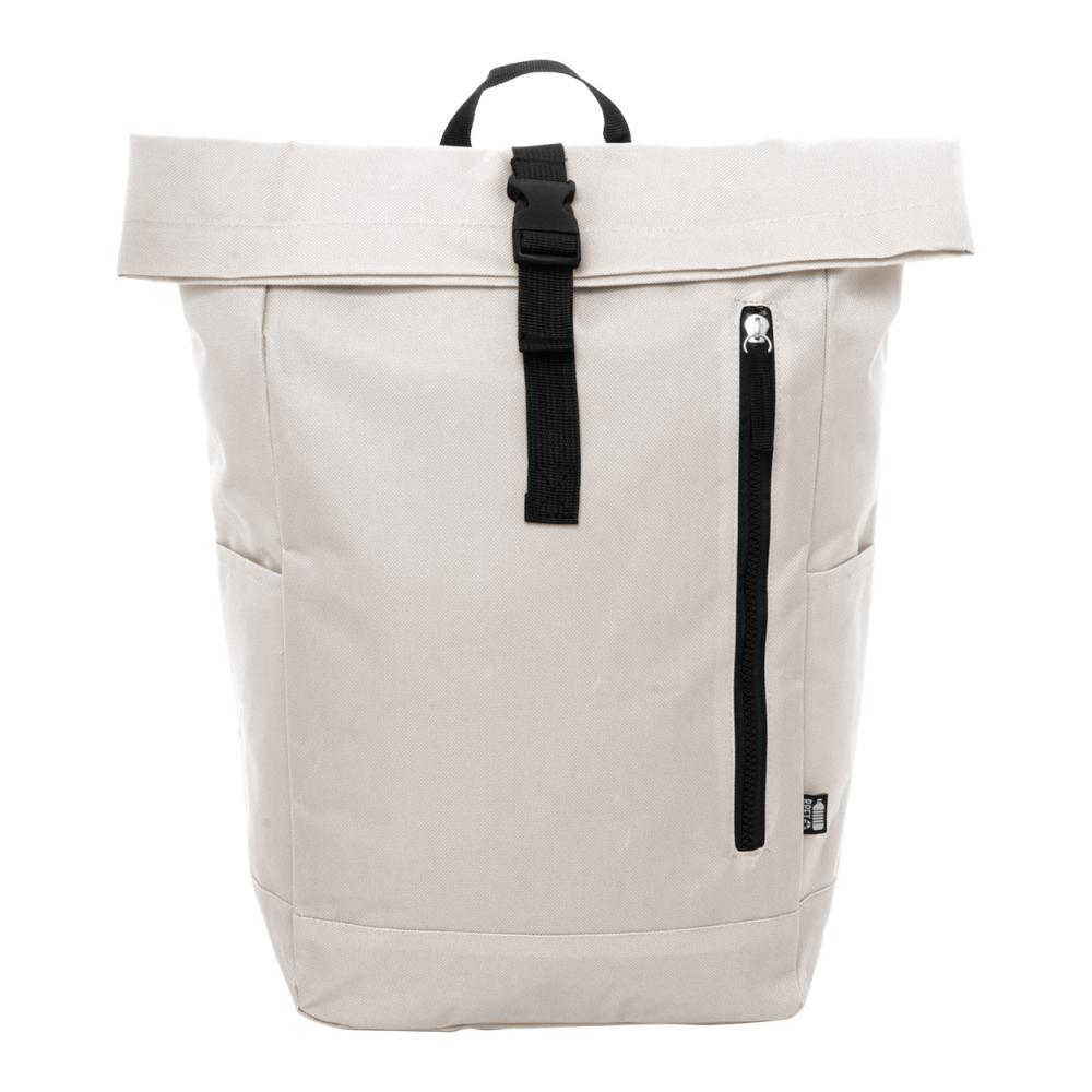 Рюкзак с застежкой на пряжке, отделением для ноутбука (14 дюймов) и карманом на молнии. С мягкой спинкой и плечевыми ремнями. Изготовлен из 600D RPET полиэстера с характерным ярлыком RPET.
