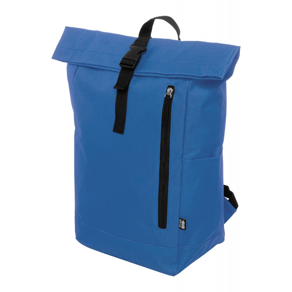 Рюкзак с застежкой на пряжке, отделением для ноутбука (14 дюймов) и карманом на молнии. С мягкой спинкой и плечевыми ремнями. Изготовлен из 600D RPET полиэстера с характерным ярлыком RPET.
