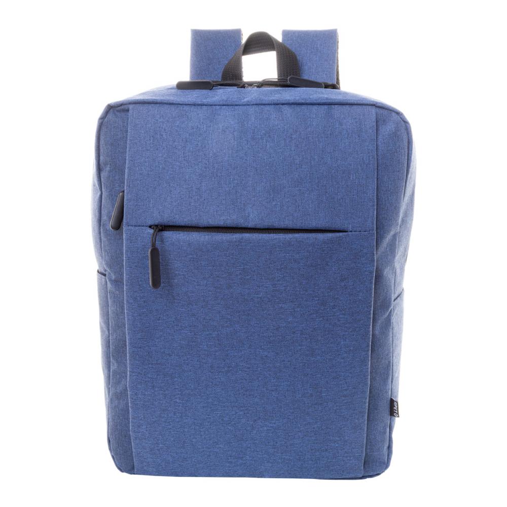 Рюкзак с застежкой на молнии, основное отделение, 2 кармана на молнии, боковой карман и отделение для ноутбука (15 дюймов). С ремешком для тележки, подкладкой на спине и плечевыми ремнями. Полиэстер RPET 600D, с характерным ярлыком RPET.