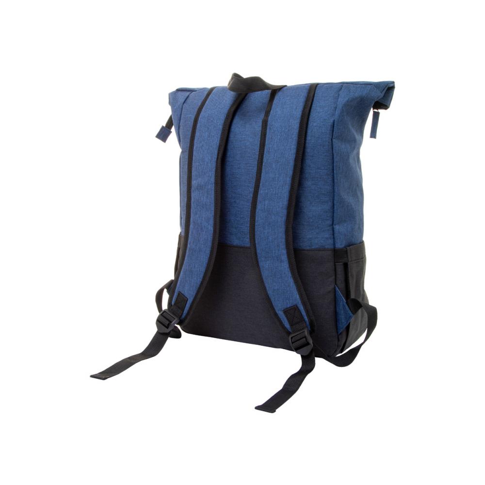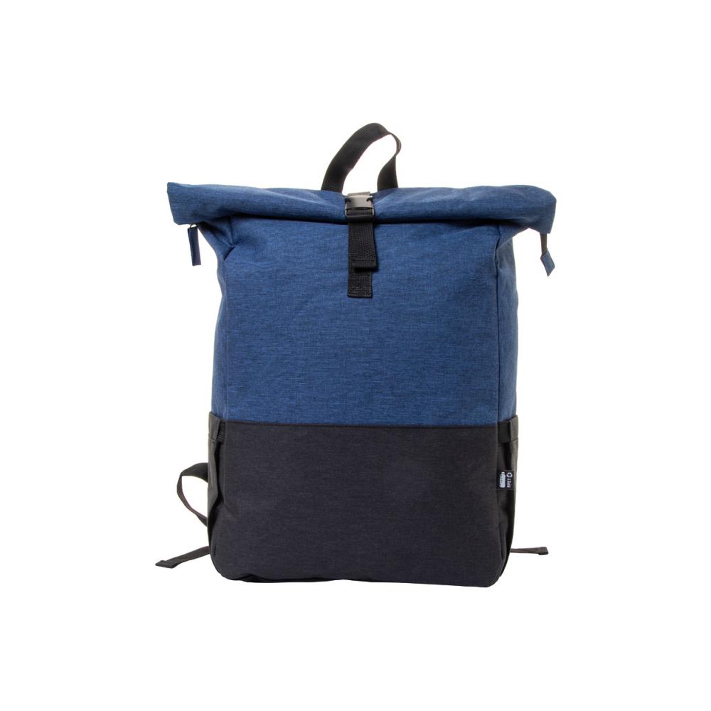 Рюкзак с двухцветным дизайном, с застежкой на пряжку, основное отделение на молнии, отделение для ноутбука (15") и планшета (10") с подкладкой, боковые карманы, подкладка на спине и регулируемые лямки. Изготовлен из 300D RPET полиэстера с характерным ярлыком RPET.