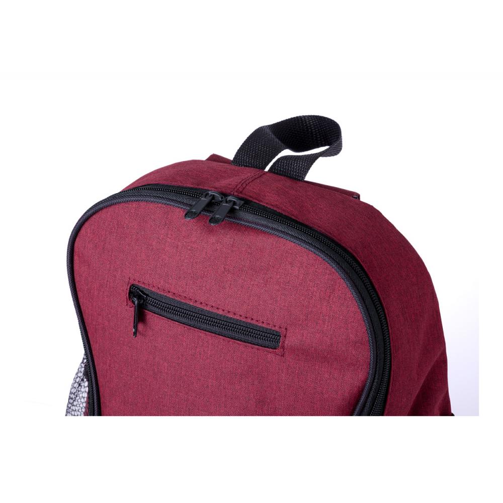 Рюкзак с застежкой на молнии и передним карманом, сетчатыми боковыми карманами, подкладкой на спине и плечевыми ремнями. Изготовлен из 300D RPET полиэстера с характерной этикеткой RPET.