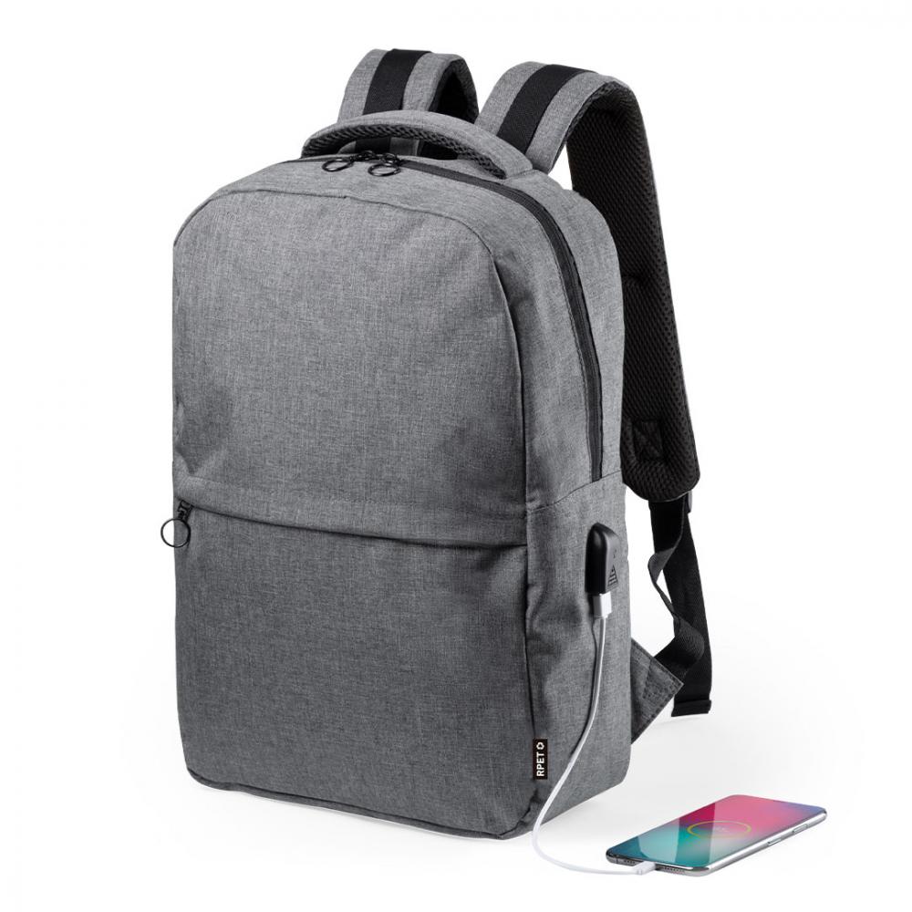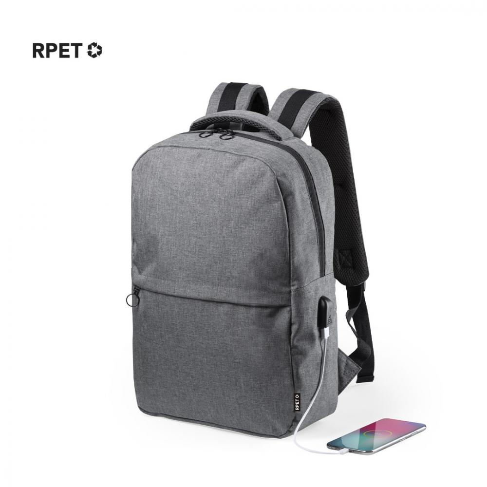 Особенности Деловой рюкзак из прочного материала 600D RPET, полученного из переработанных пластиковых материалов, чтобы стимулировать повторное использование остатков пластика и способствовать экологичности Земли. С двойным съемным карманом на молнии и передним карманом. Внутреннее отделение с мягкими карманами для планшета размером до 10 дюймов и ноутбука размером до 15 дюймов, включая USB-соединение для зарядки мобильных устройств (кабель в комплекте, вспомогательный аккумулятор в комплект не входит). Усиленные уголки и аксессуары черного цвета. С мягкой спинкой и регулируемыми мягкими плечевыми ремнями. Отличительный знак RPET на этикетке. USB-соединение. Мягкое отделение для ноутбука и планшета. Мягкая спинка и Плечевые ремни