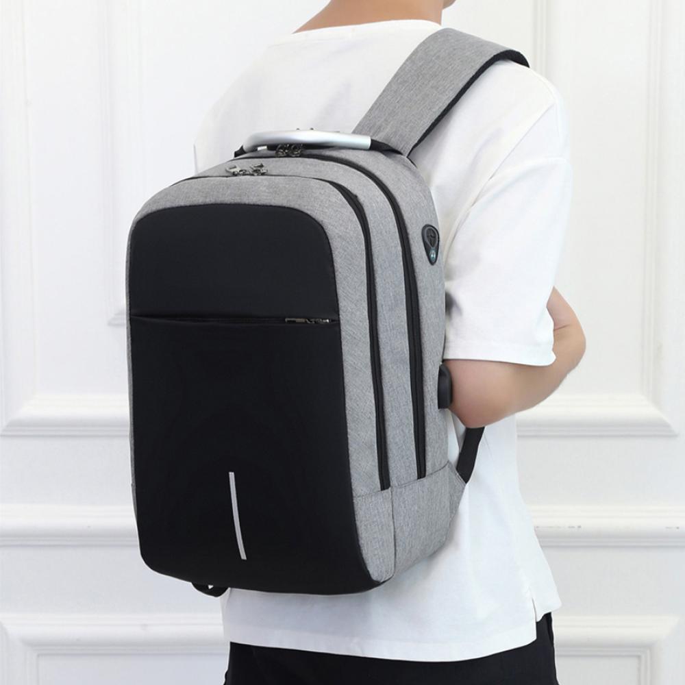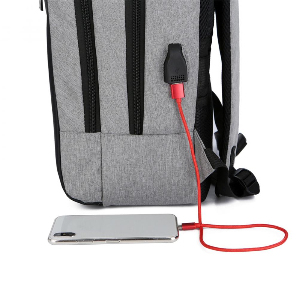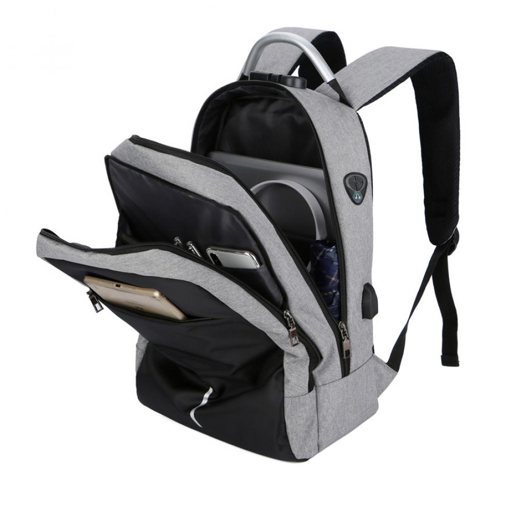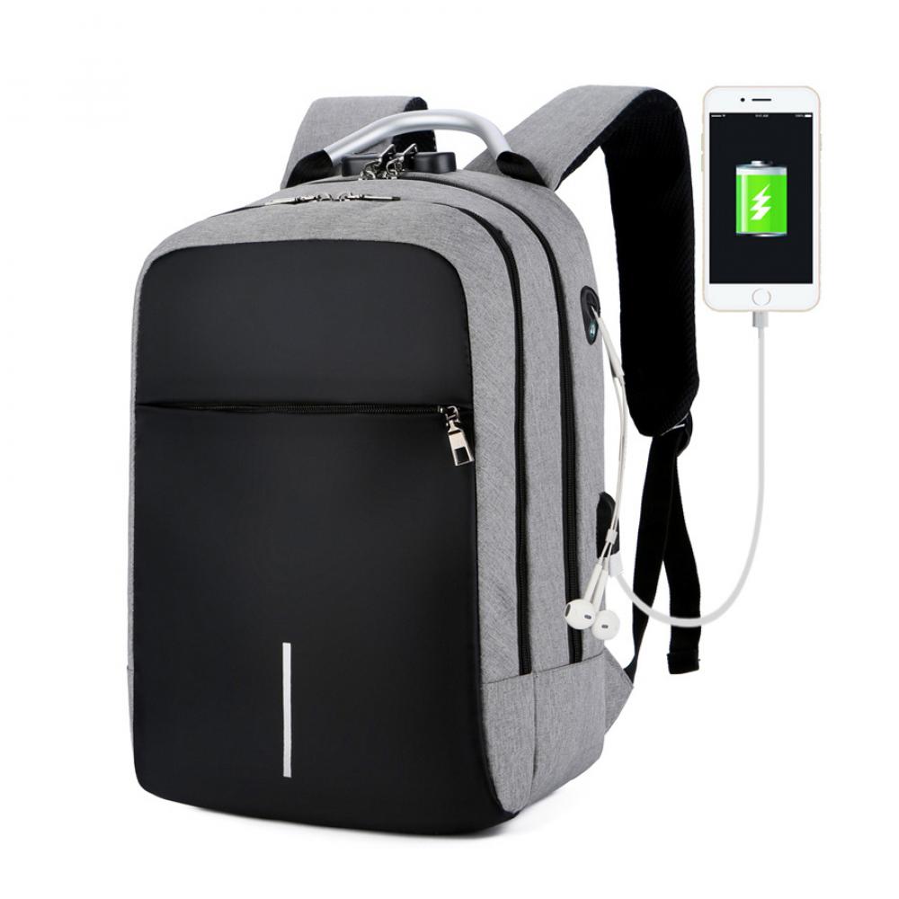 Безопасность на замке с рюкзаком Madma. Благодаря кодовому замку из комбинации 3х чисел, содержимое основного отделения под надежной защитой. По умолчаню код: 0-0-0. Передний карман для мелочей, 2 вместительный основных отделения. Фронтовое отделение имеет внуртенний карман с сеточкой. Основное отделение имеет карман для ноутбука, 2 кармана для мелочек и 2 кармана для письменных принадлежностей. Снаружи есть USB-разъем с проводом внутри для подкдючения внешнего аккумулятора, а также отверстие для наушников. Ручка, спинка и лямки рюкзака с системой вентиляции. Со стороны спины есть лямка для размещения рюкзака на ручке чемодана.