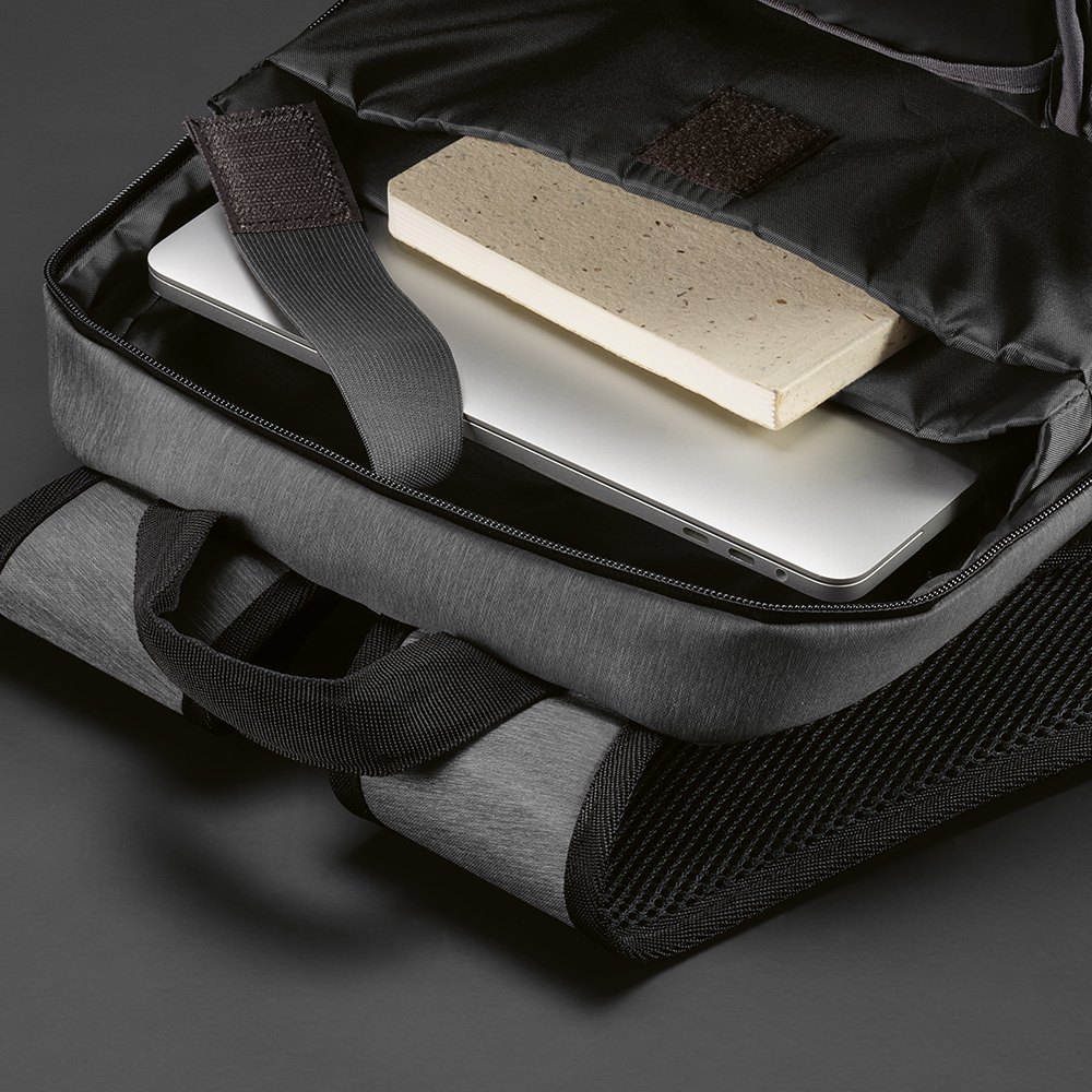 Откройте для себя функциональный стиль с нашим рюкзаком на 22 литра из переработанного нейлона. Оснащен усиленной верхней ручкой и водонепроницаемыми молниями. Боковые эластичные карманы предназначены для переноски бутылок, а также имеется боковой карман на молнии. В комплект входит отдельная сумка из переработанного хлопка.