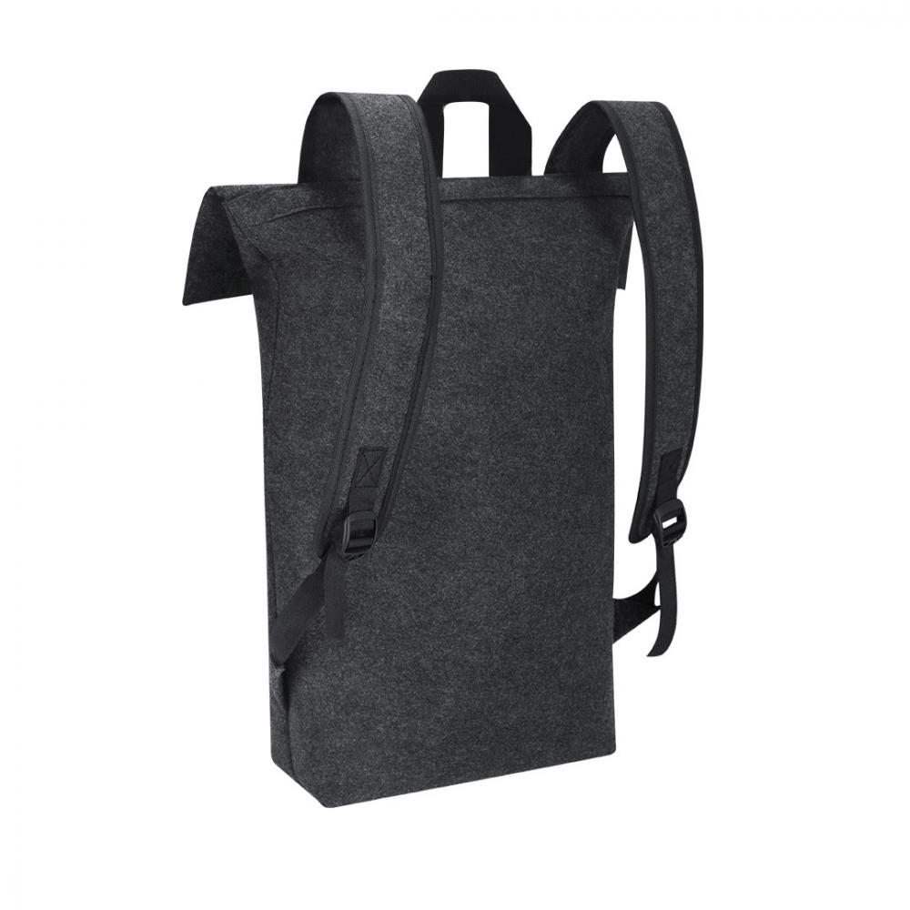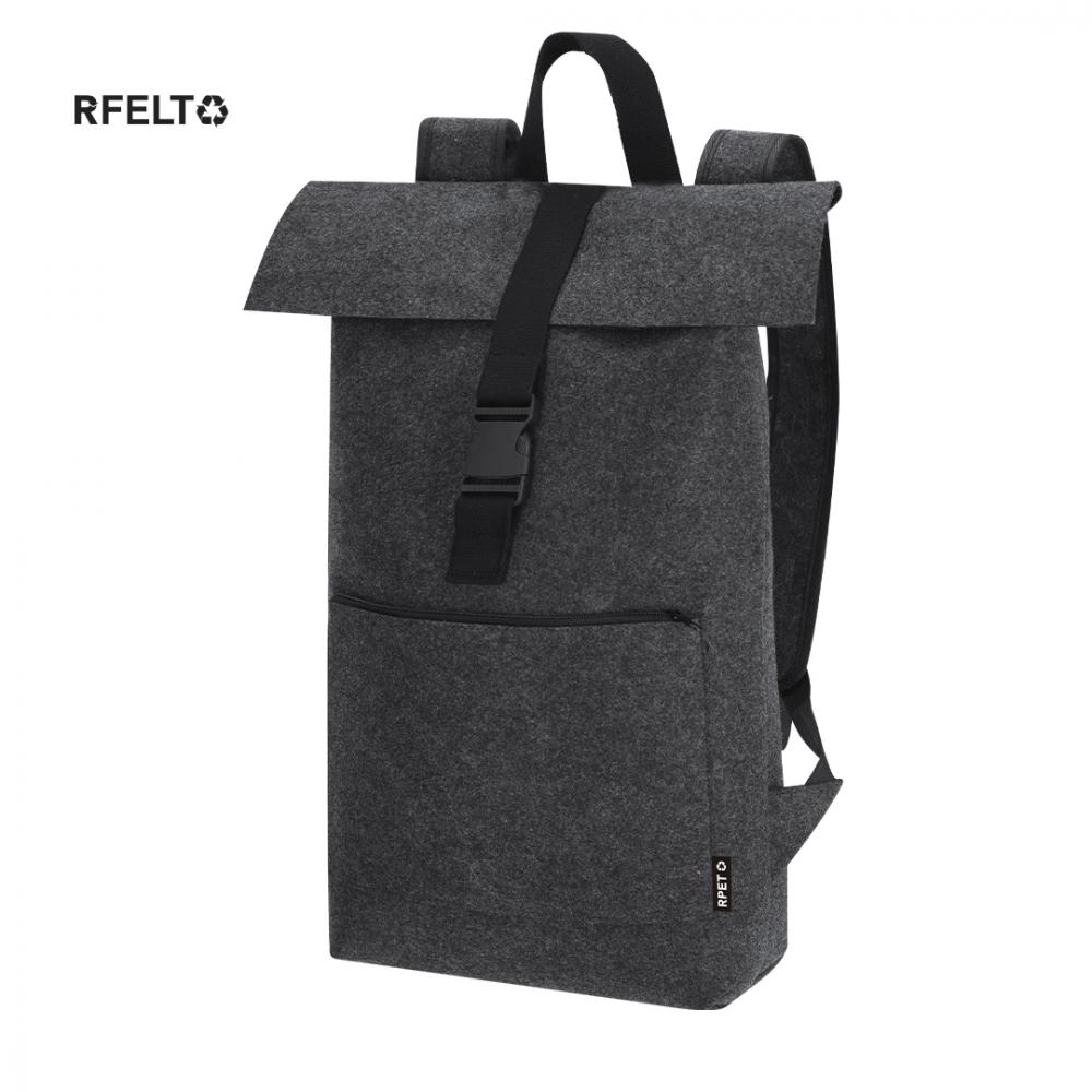 Рюкзак из RPET фетра. Оснащен основным карманом с застежкой на пряжку и дополнительным передним карманом с застежкой на молнии. Оборудован регулируемыми и усиленными лямками и верхней ручкой. Включает этикетку RPET на внешнем ярлыке. RPET фетр - результат сочетания процесса переработки пластиковых материалов с древней техникой изготовления фетра, что приводит к созданию экологически чистого материала, который, помимо того, что он перерабатывается, также подлежит переработке.