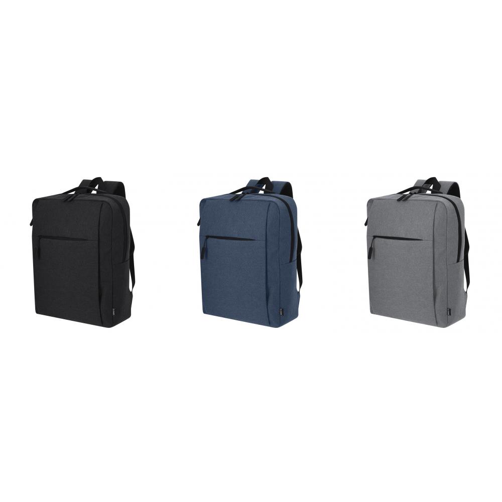Рюкзак из мягкого полиэстера RPET 600D. С главным карманом на двойной молнии. Внутренний карман для ноутбуков до 15 дюймов. Включает два передних кармана с невидимыми молниями и боковые карманы. Обивка регулируемая спинка и лямки. В комплекте ремень для крепления к тележке или чемодану, идеально подходит для путешествий. С этикеткой RPET на бирке. Материал RPET изготовлен из переработанного пластика, способствуя повторному использованию пластиковых отходов и помогая устойчивости планеты. Обивка. Обивка для ноутбука