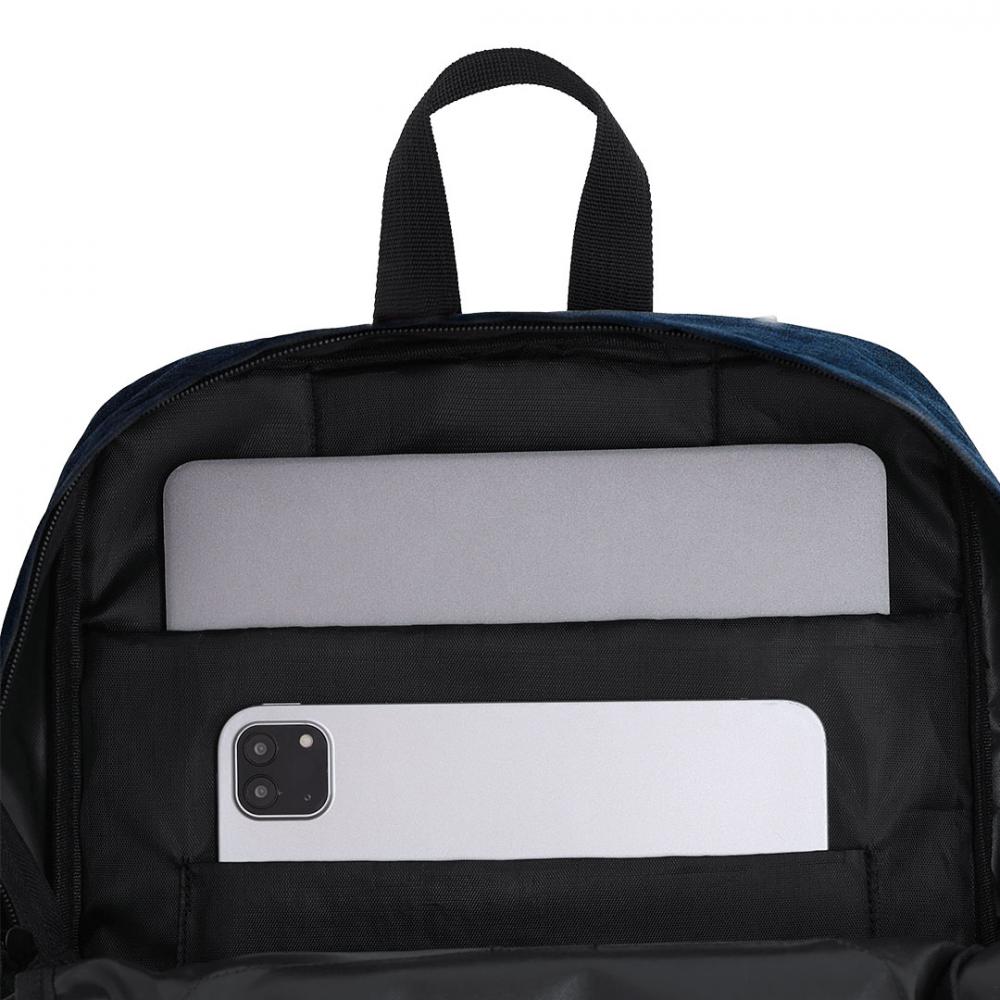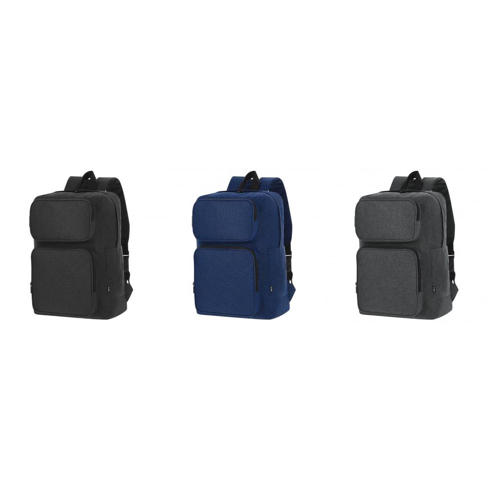 Рюкзак из мягкого полиэстера RPET 600D. С главным карманом на молнии с двойным замком. Внутренний карман для ноутбука до 15 дюймов и планшета до 10 дюймов. Включает два передних кармана на молнии и карман по бокам. Обивка и регулируемые лямки. В комплекте ремень для крепления к тележке или чемодану, идеально подходит для путешествий. С обозначением RPET на этикетке. Материал RPET изготовлен из переработанного пластика, способствуя повторному использованию пластиковых отходов и помогая устойчивости планеты. Обивка для ноутбука и планшета. Обивка спины и плечевых ремней. Полиэстер 600D RPET.