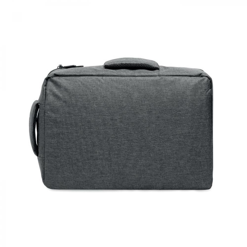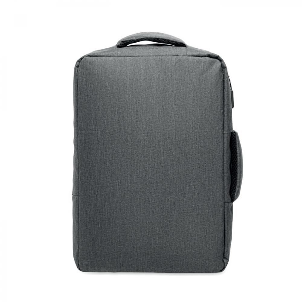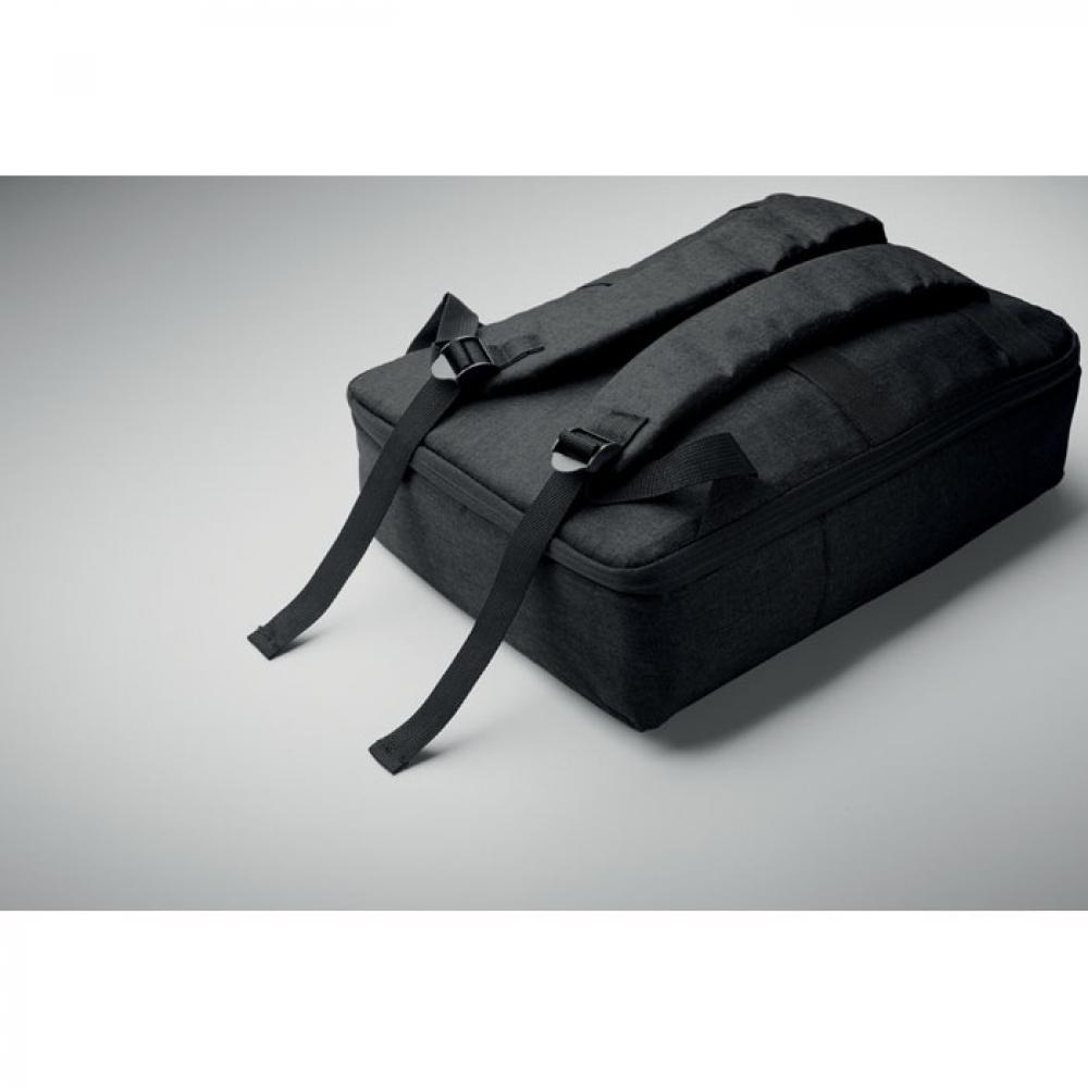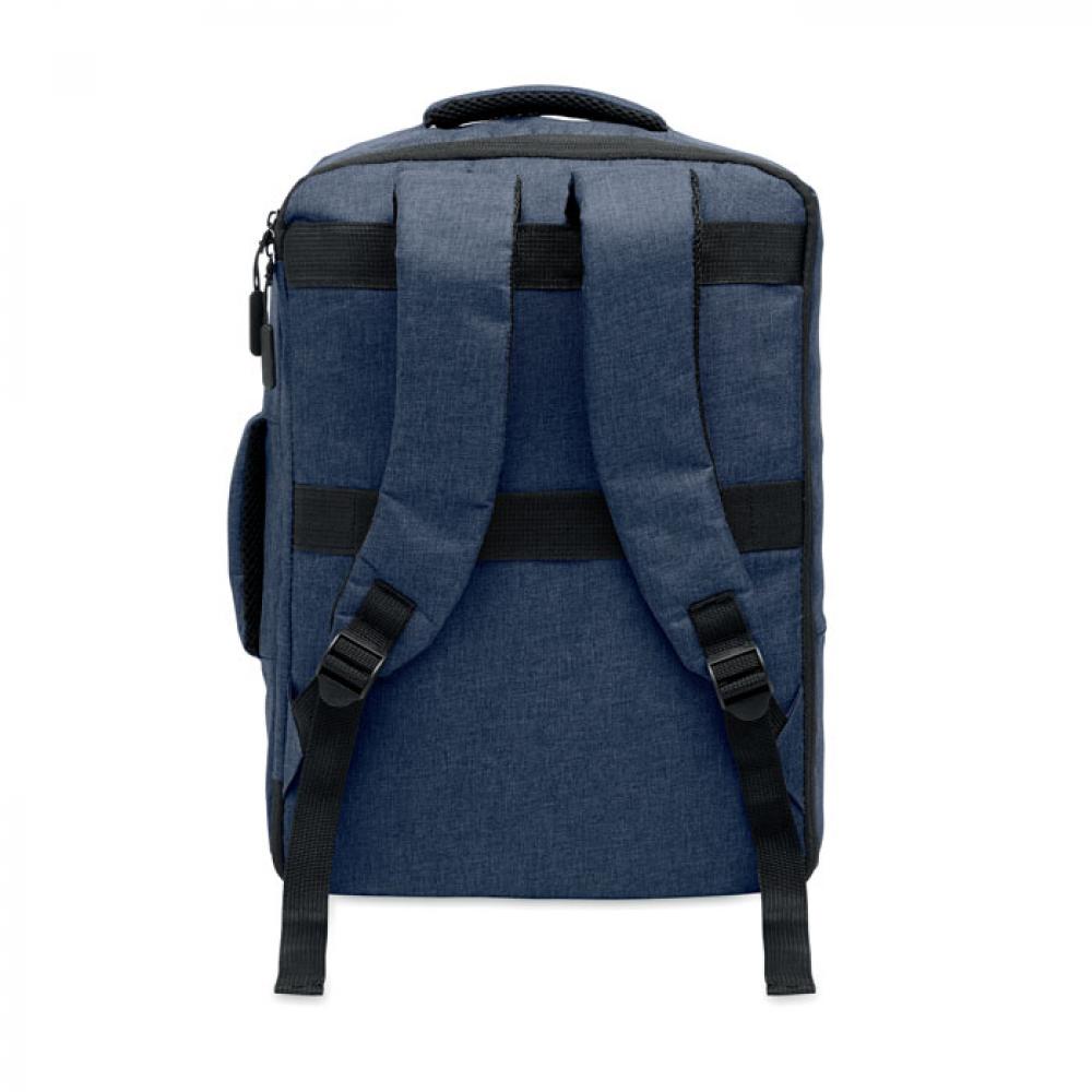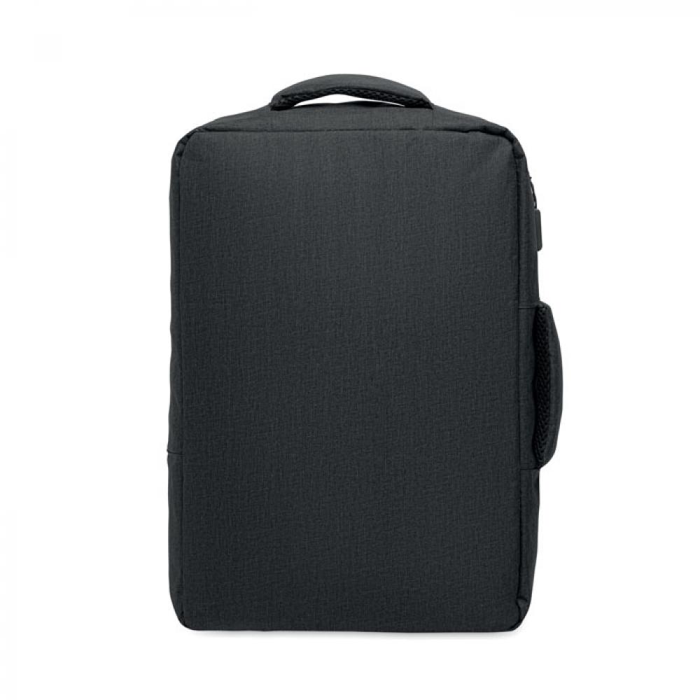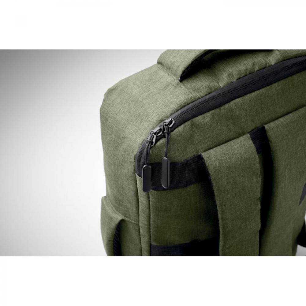 Тонкий рюкзак для ноутбука с диагональю 15 дюймов из переработанного материала 300D RPET и подкладкой из 210D RPET. Включает отделение для ноутбука, 2 внутренних кармана, 2 внутренних отделения для ручек и 2 мягкие ручки для переноски. Спинка и плечевые ремни с мягкой подкладкой. Крепление для чемодана на обратной стороне.