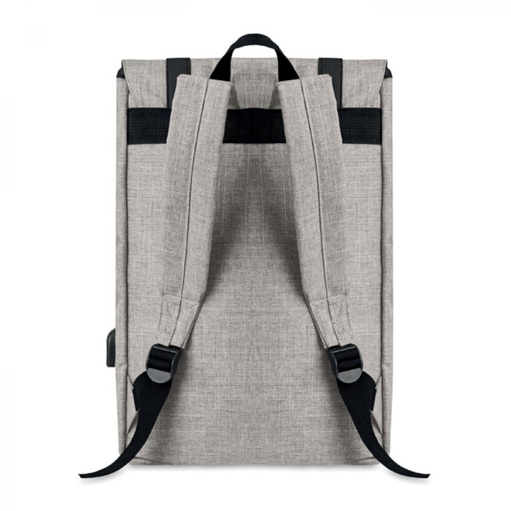 Рюкзак из полиэстера 600D с мягкими шлейками. Внутри 1 отделение для 15-дюймового ноутбука и USB-кабель для зарядки. Декоративные ремни закрываются на магните. Фронтальный карман на молнии.