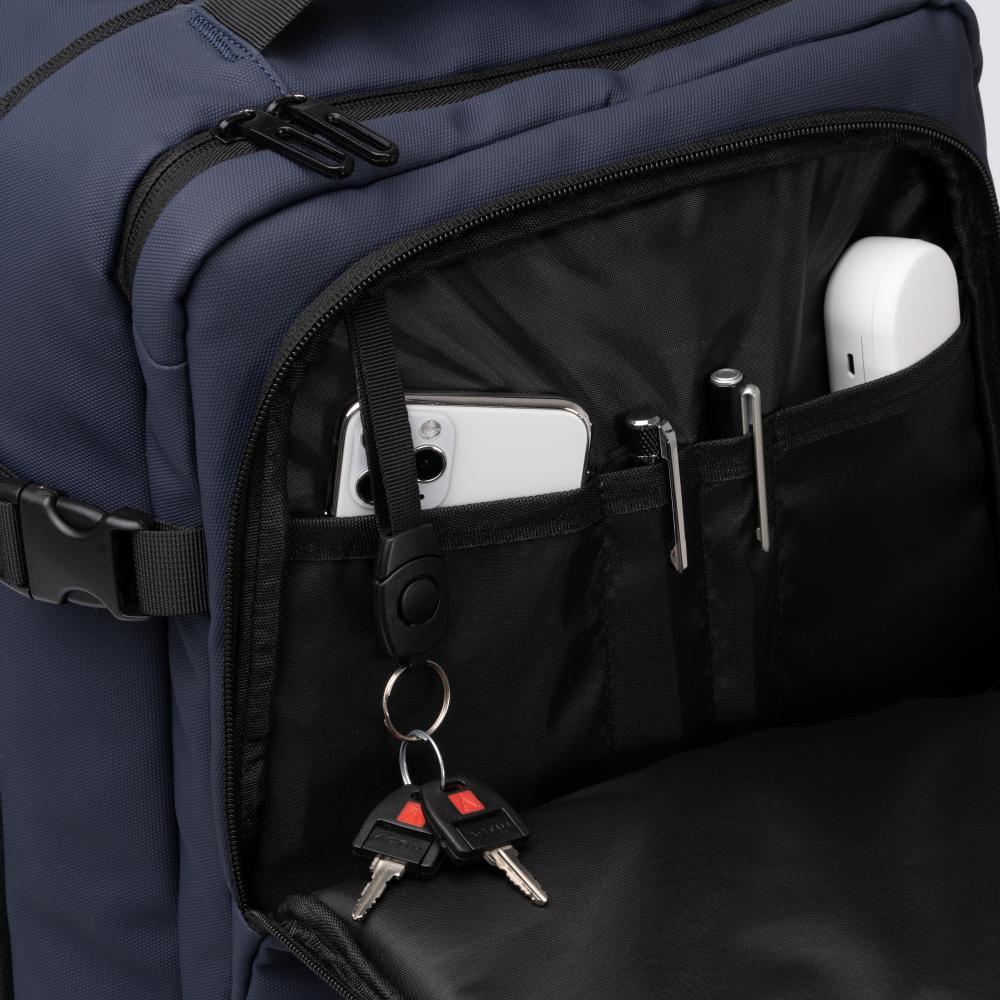 Универсальный дорожный рюкзак OREGON сделан из искусственной кожи. Специальнаая молния и стяжки-фиксаторы позволяют увеличивать размер рюкзака и фиксировать дополнитеьные предметы (куртку, коврик и т.п.) снаружи.Раскладывается на 180 градусов.Множество внутренних и наружных прибамбасов и карманов: для одежды и других вещей, органайзера для мелочей, ходера для крепления ключей, уплотнённых карманов для ноутбука до 15 дюймов, планшета и прочих гаджетов.Уплотнённые плечевые ремни, задняя стенка, две коротких ручки. Держатель для чемодана и дополнительная фиксация плечевых ремней.Задняя стенка закрыта вентилируемой и гигроскопичной 3D-стенкой и скрытым карманом для документов.