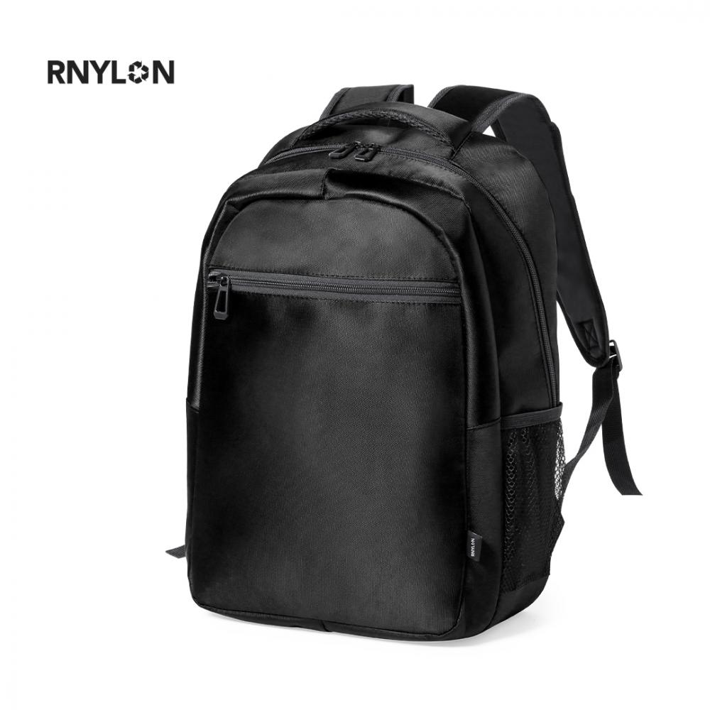Особенности Высококачественный рюкзак из нейлона 420D. Основное отделение с соответствующей застежкой на молнию и двойным съемником. Включая наружный карман на молнии и 2 боковых сетчатых кармана. Мягкая ручка, спинка и плечевые ремни, последние регулируются. Внутри с мягким отделением для ноутбука для ноутбуков размером до 15 дюймов и креплением сзади для установки на тележку. Выпускается в широкой цветовой гамме с надписью recycled на внешней этикетке. Материал RNYLON изготовлен из переработанного пластика, чтобы стимулировать повторное использование пластиковых отходов и способствовать устойчивому развитию планеты. Мягкое отделение для ноутбука. Мягкая спинка и плечевые ремни