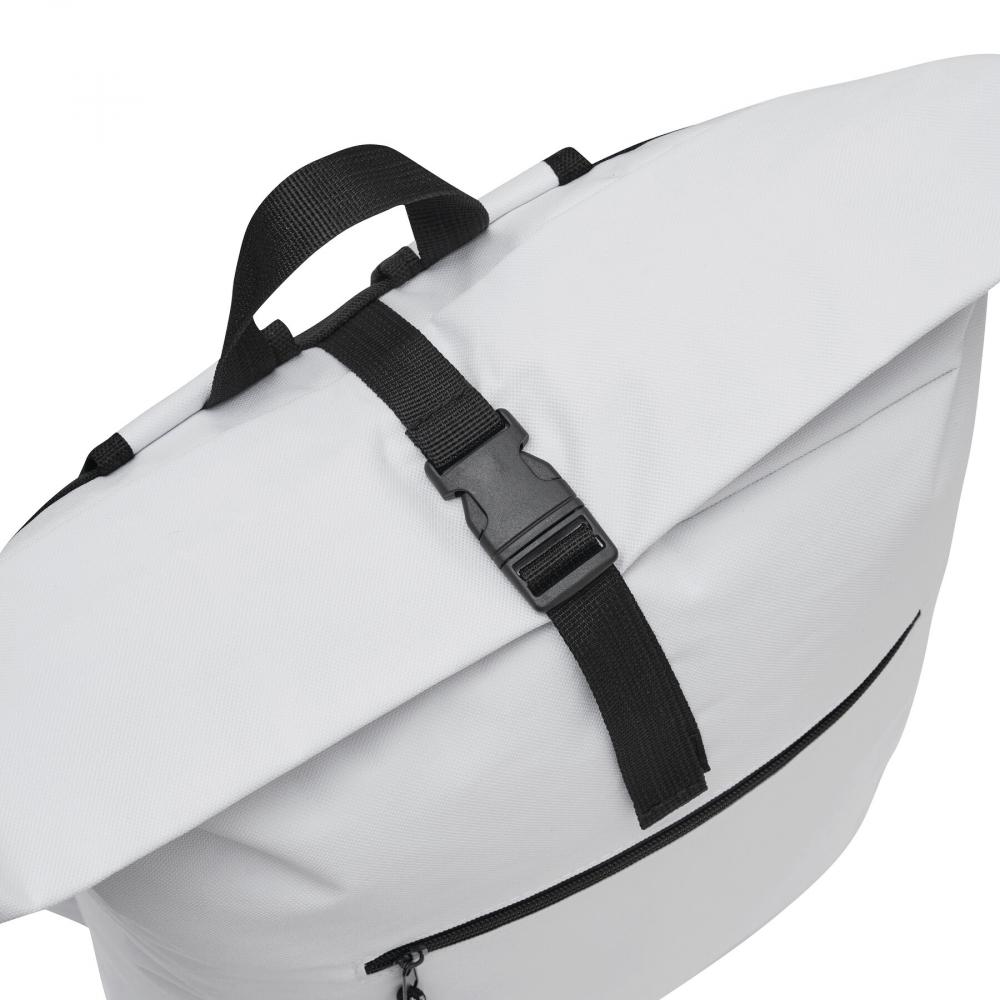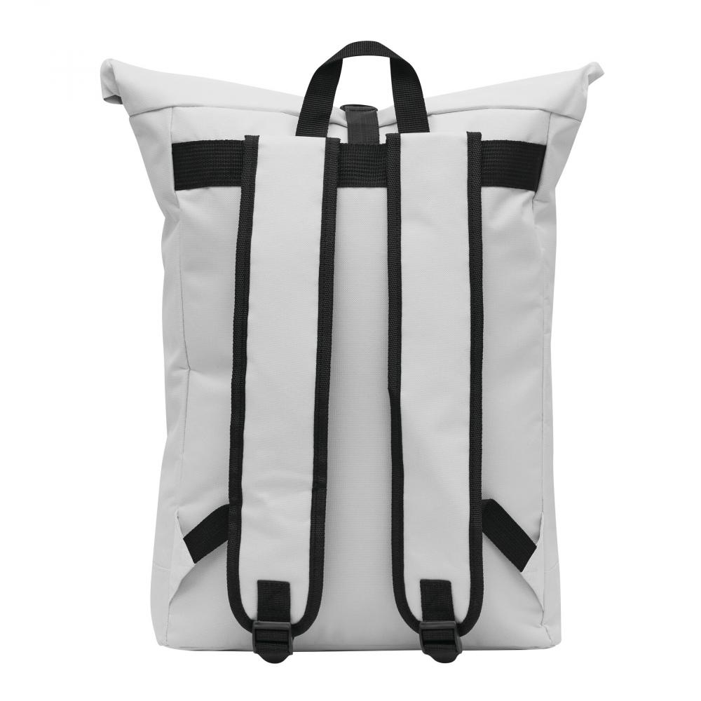 Рюкзак ROLL-TOP: изготовлен из переработанного пластика (RPET), передний отсек на молнии, большое основное отделение с мягким внутренним отсеком для ноутбука или планшета, верх можно свернуть и закрепить застежкой, ручка для переноски, мягкое дно, плечевые ремни, задняя панель