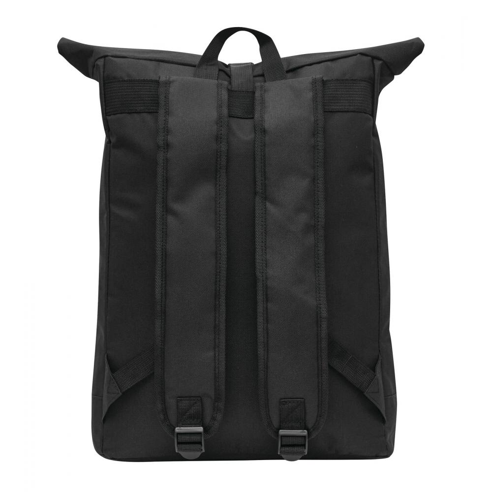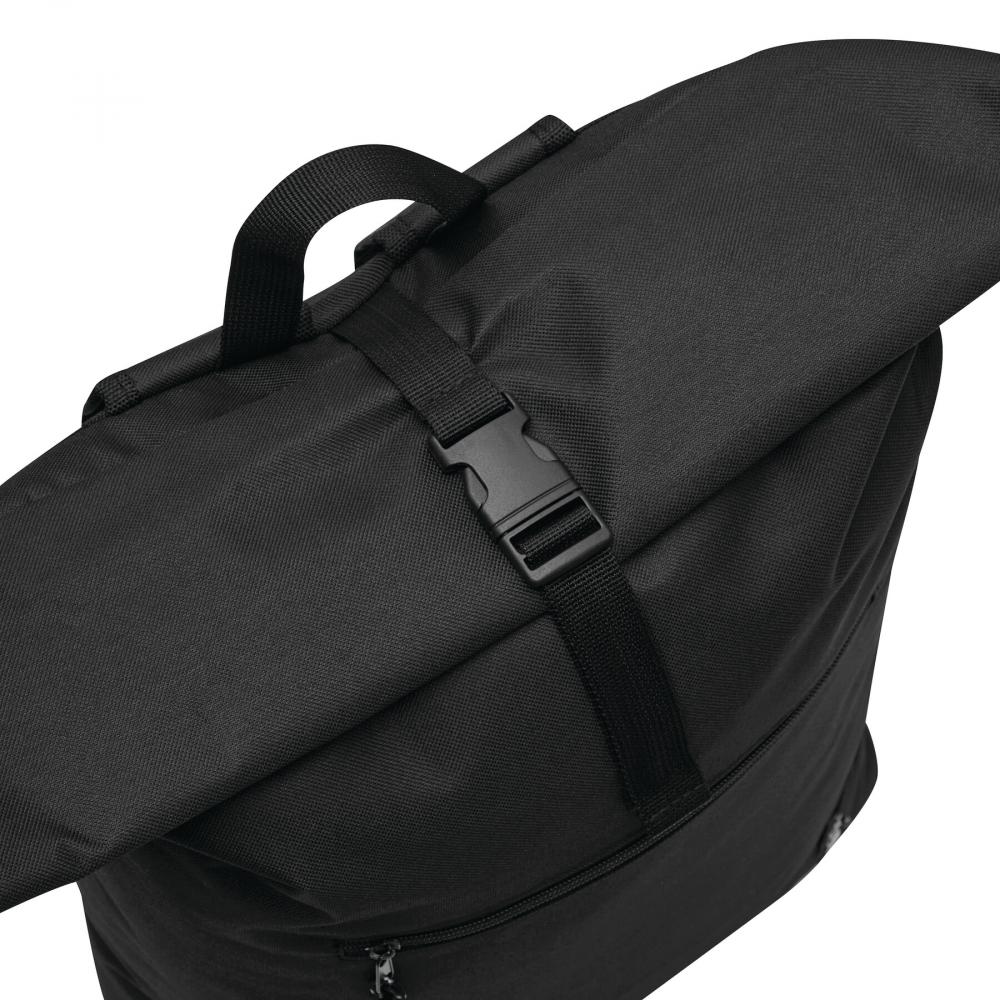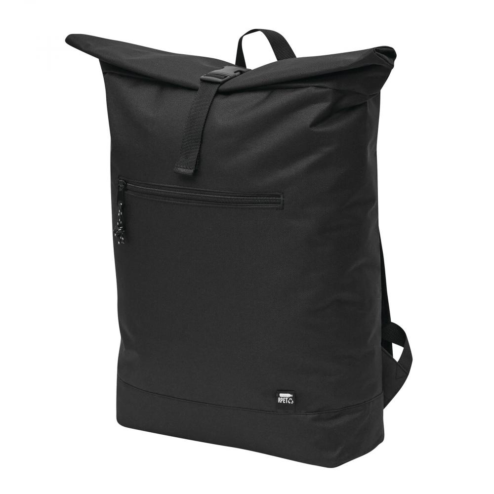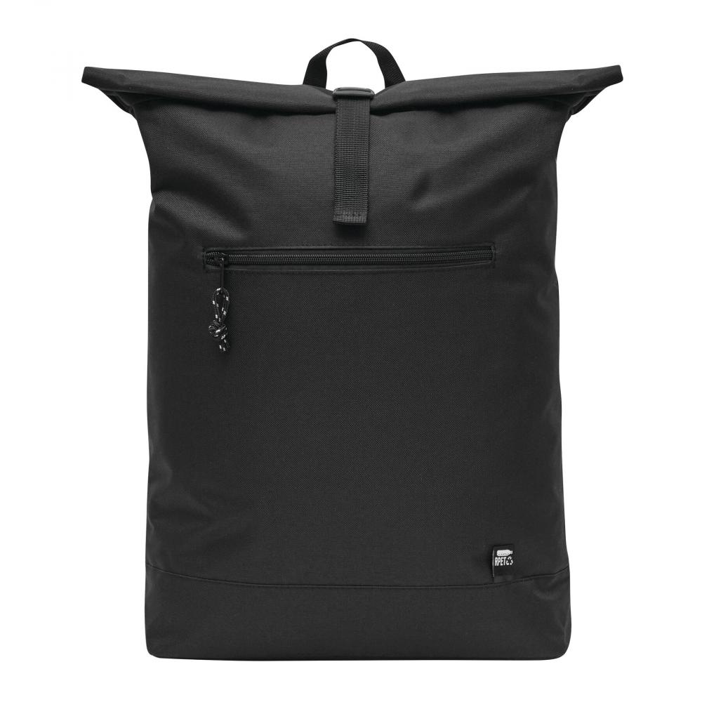 Рюкзак ROLL-TOP: изготовлен из переработанного пластика (RPET), передний отсек на молнии, большое основное отделение с мягким внутренним отсеком для ноутбука или планшета, верх можно свернуть и закрепить застежкой, ручка для переноски, мягкое дно, плечевые ремни, задняя панель
