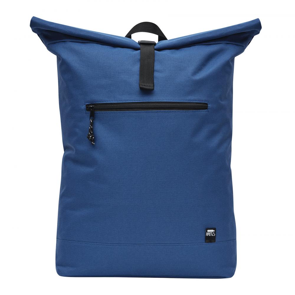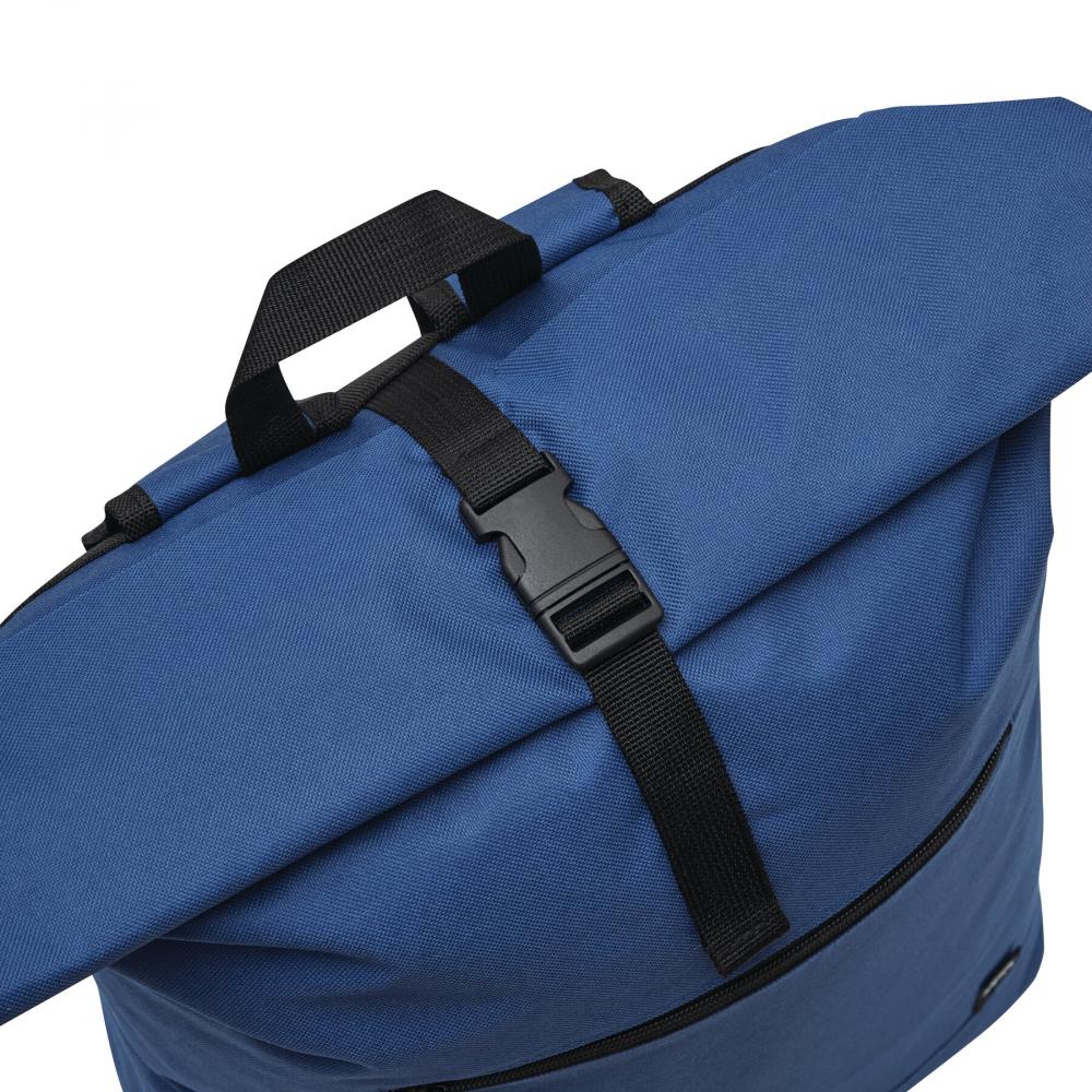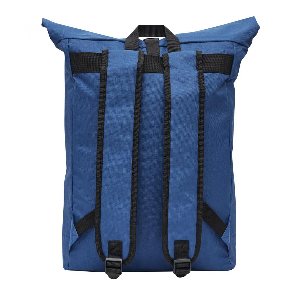 Рюкзак ROLL-TOP: изготовлен из переработанного пластика (RPET), передний отсек на молнии, большое основное отделение с мягким внутренним отсеком для ноутбука или планшета, верх можно свернуть и закрепить застежкой, ручка для переноски, мягкое дно, плечевые ремни, задняя панель